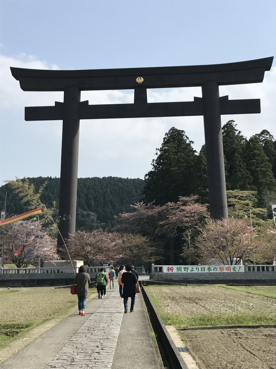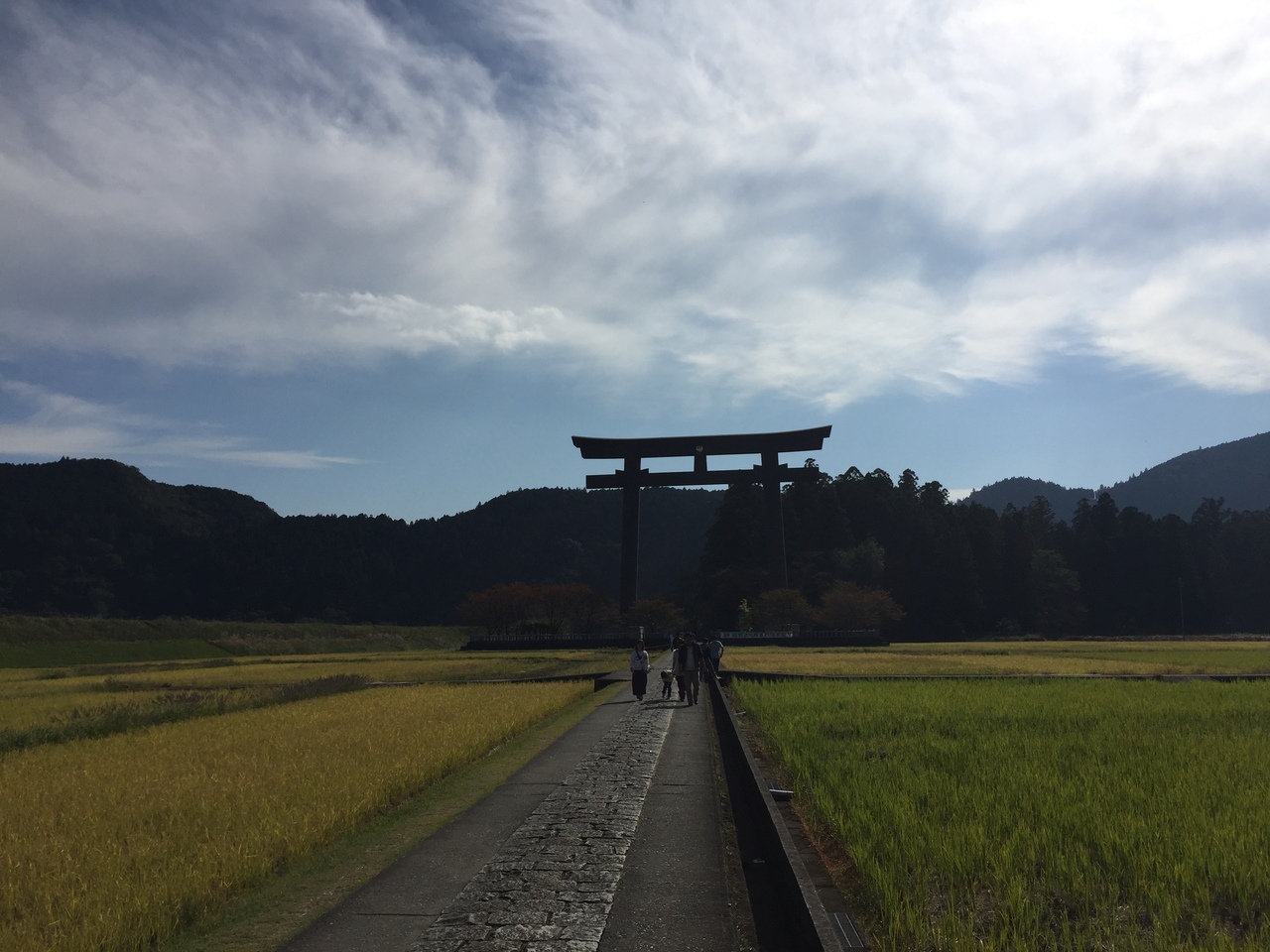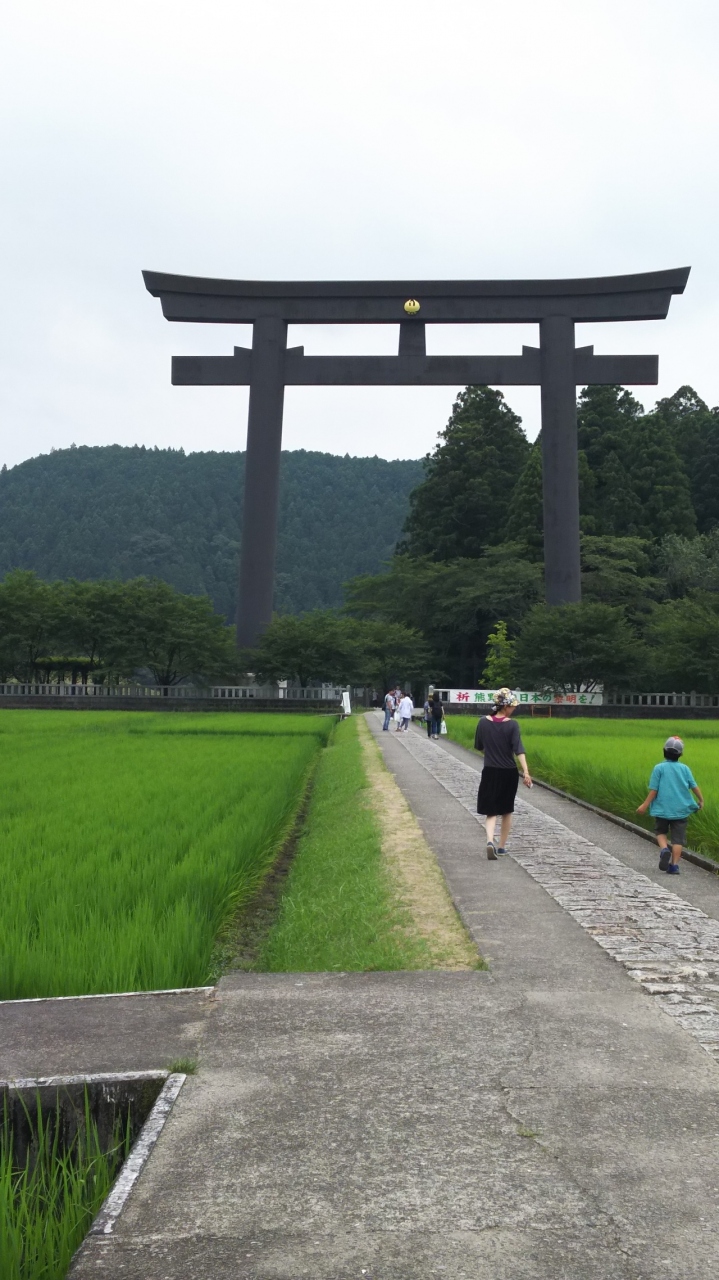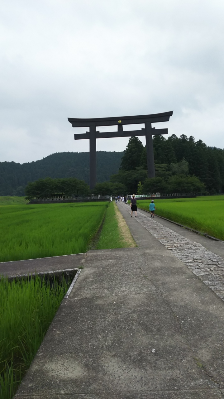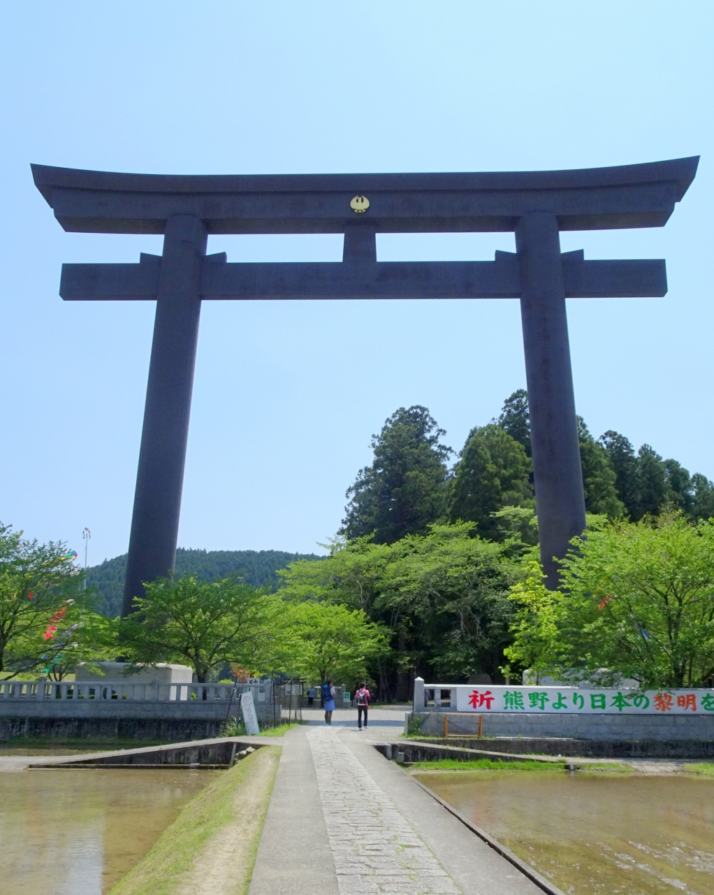 熊野... 続きを読む本宮大社の入り口付近に『大斎原 徒歩5分』と書かれた案内板があり、その方向に従って、道路を渡って進んでいくと、大きな鳥居が見えます。その背後のこんもりとした森が大斎原です。大鳥居は、高さ約34m、幅約42mもあって周りが田んぼということもあり、その存在が遠くからも確認できます。大斎原には社殿などの建物は無く、石の祠や狛犬があるのみで一見公園のような感じがするところですが、パワースポットと言われるだけあって心が洗われるような雰囲気のあるところでした。熊野本宮大社を訪れたら、是非、訪ねられることをオススメします。