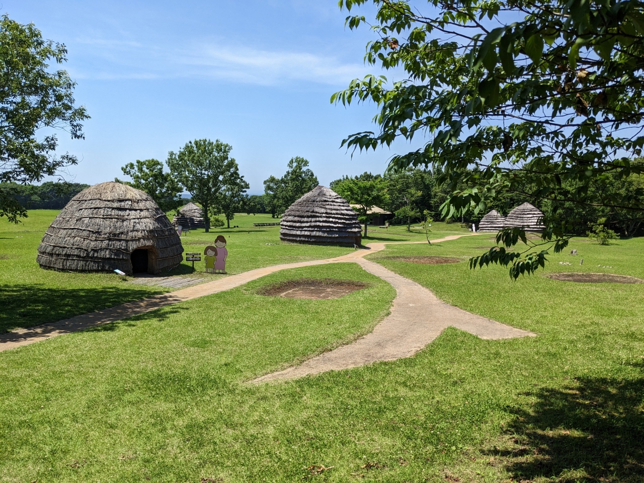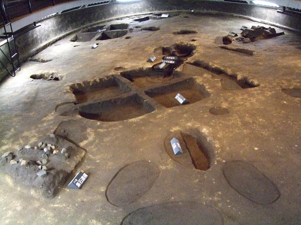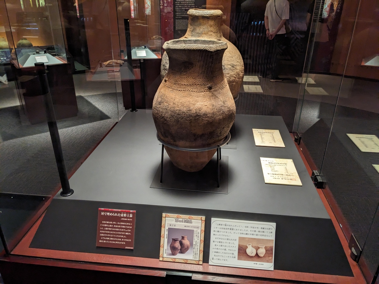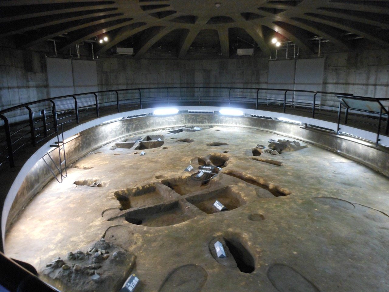遺跡が好きなので、紀元前5世紀から紀元後3世紀までの弥生時代のものと言われる吉野ヶ里遺跡(佐賀県)、約5900年前~4200年前の縄文時代の集落跡と言われる三内丸山遺跡(青森県)なども見てきましたが、コチラはそれらより古いにもかかわらず、地中に埋められていたため双子壺などは、割れずに保存状態も良いのも驚くでした