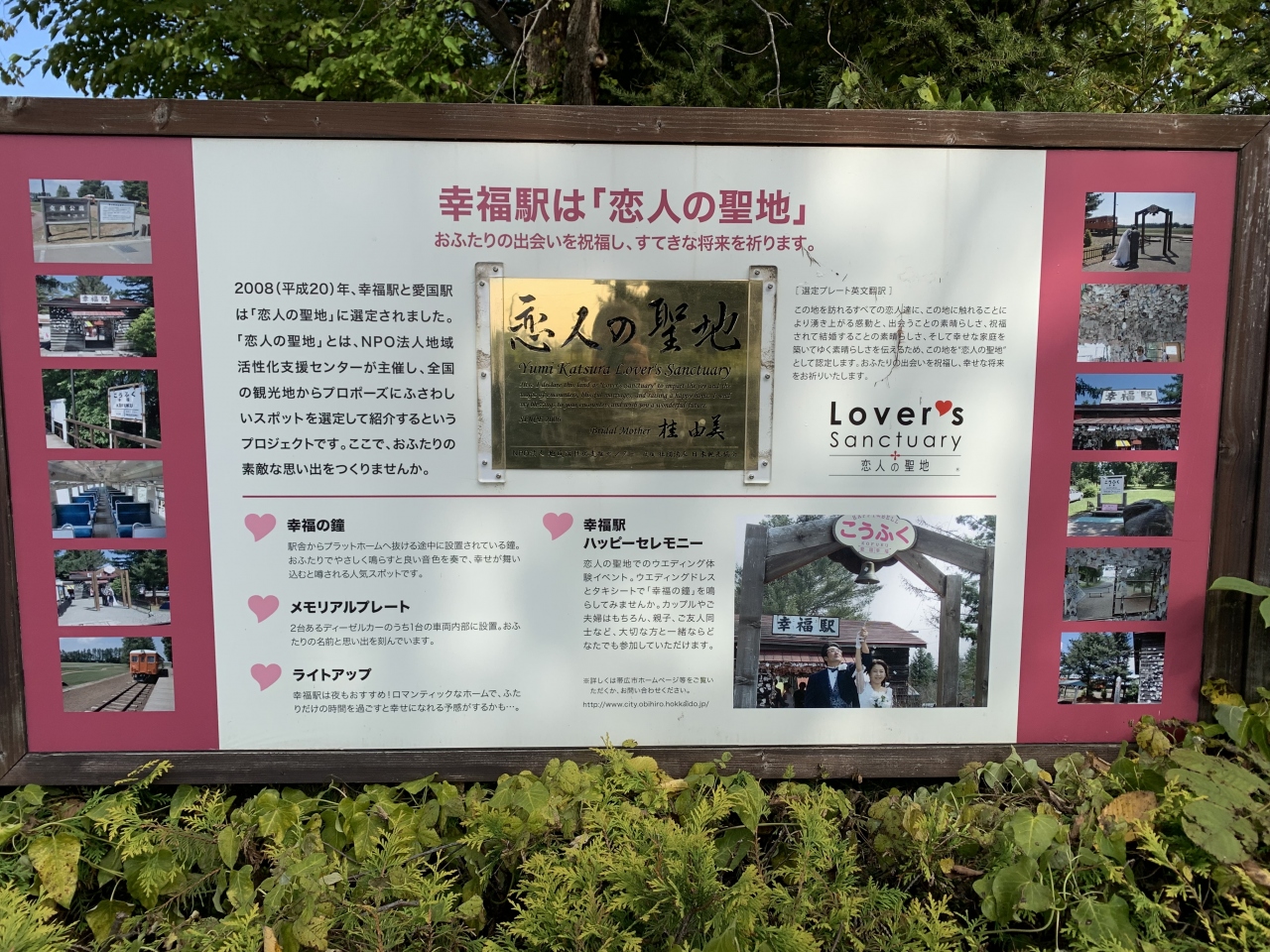 昭和62年に58年間続いた旧国鉄広尾線が廃線になり、幸福駅は鉄道公園になりました。1973年にテレビで紹介されたことから「愛の国から幸福へ」という切符が全国ブームとなり、今でも根強い人気があります。また2007年には愛国駅とともに「恋人の聖地」に認定され、たくさんの方が訪れています。2013年9月から改修工事を行い、11月16日にリニューアルオープン。Wi-fiスポットの設置や、周辺には「愛の泉」、シンボルツリー「幸福の木」も新設されています。