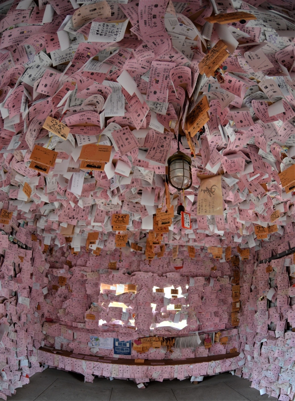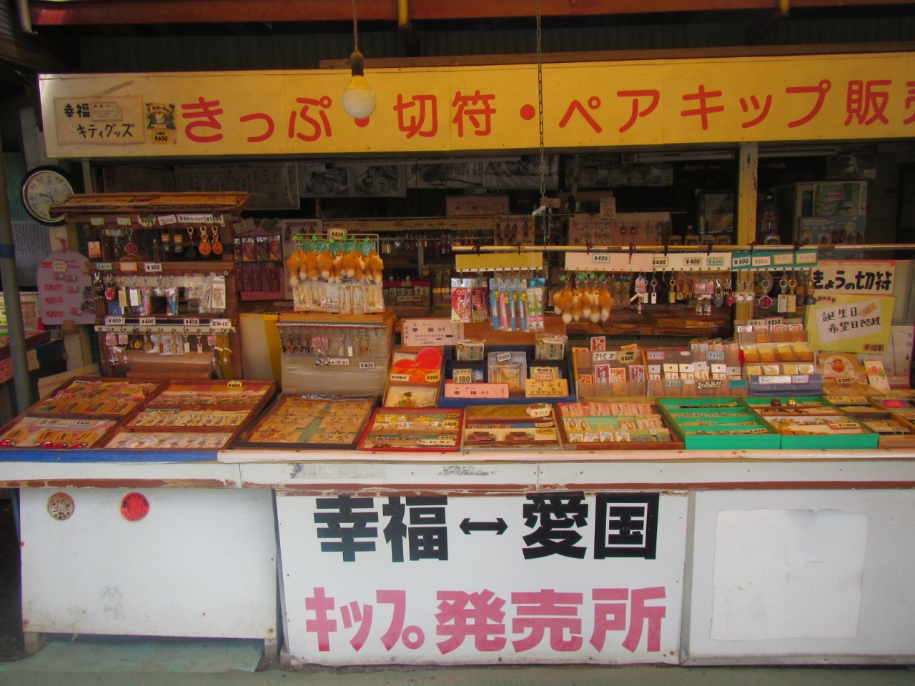 売店もあり、昔の紙のきっぷそのままのデザインを拡大した、ポストカードも売ってて、記念に購入。 そのポストカードにメッセージを書いたもの(もちろん書かれてないものもある)が、駅舎っぽい建物内に、まるでお札のように、ドバーっと貼られていました。 ちょっと怖かったけど…。