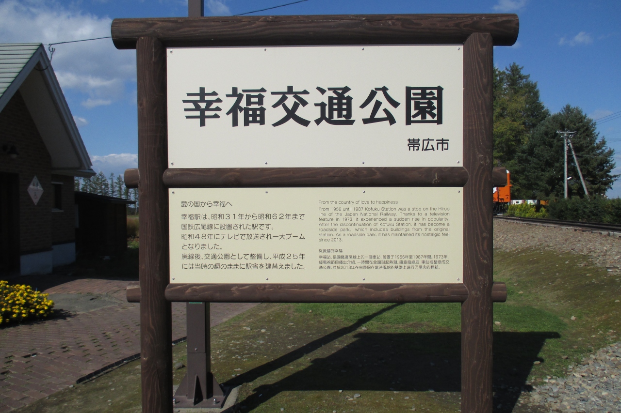 昭和62年に58年間続いた旧国鉄広尾線が廃線になり、幸福駅は鉄道公園になりました。1973年にテレビで紹介されたことから「愛の国から幸福へ」という切符が全国ブームとなり、今でも根強い人気があります。また2007年には愛国駅とともに「恋人の聖地」に認定され、たくさんの方が訪れています。2013年9月から改修工事を行い、11月16日にリニューアルオープン。Wi-fiスポットの設置や、周辺には「愛の泉」、シンボルツリー「幸福の木」も新設されています。