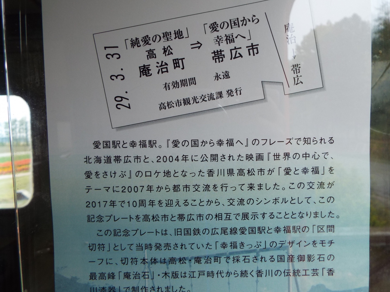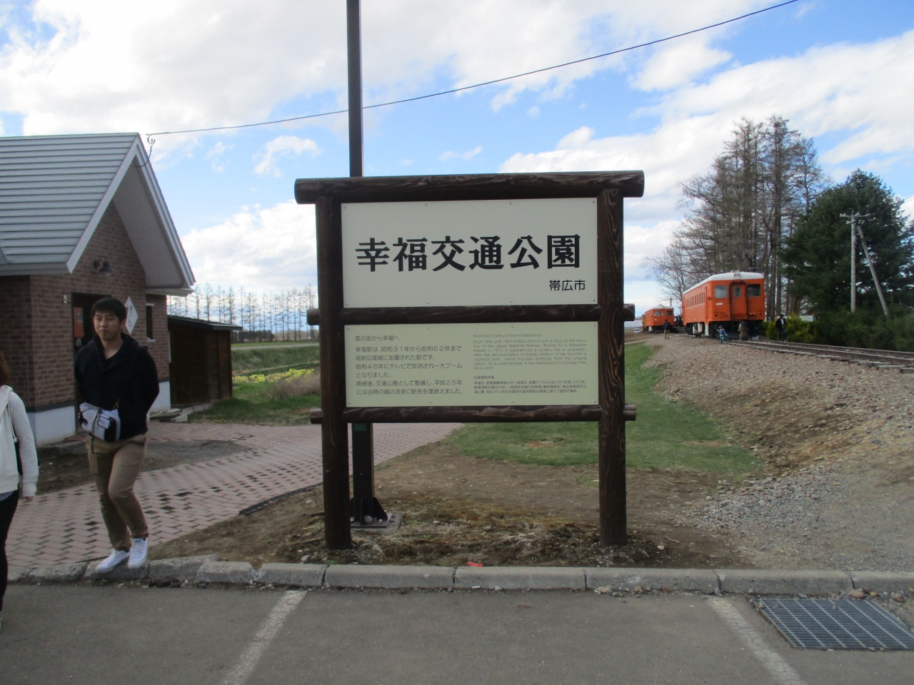 広尾線は1987年に廃線となって久しく、幸福駅も気動車2両とホーム、駅舎、お土産店があるだけで、あとは花畑の中にある鉄道公園としてその足跡を残していました。