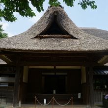 入口が少し見つけづらい大きな茅葺屋根を持つ本陣跡