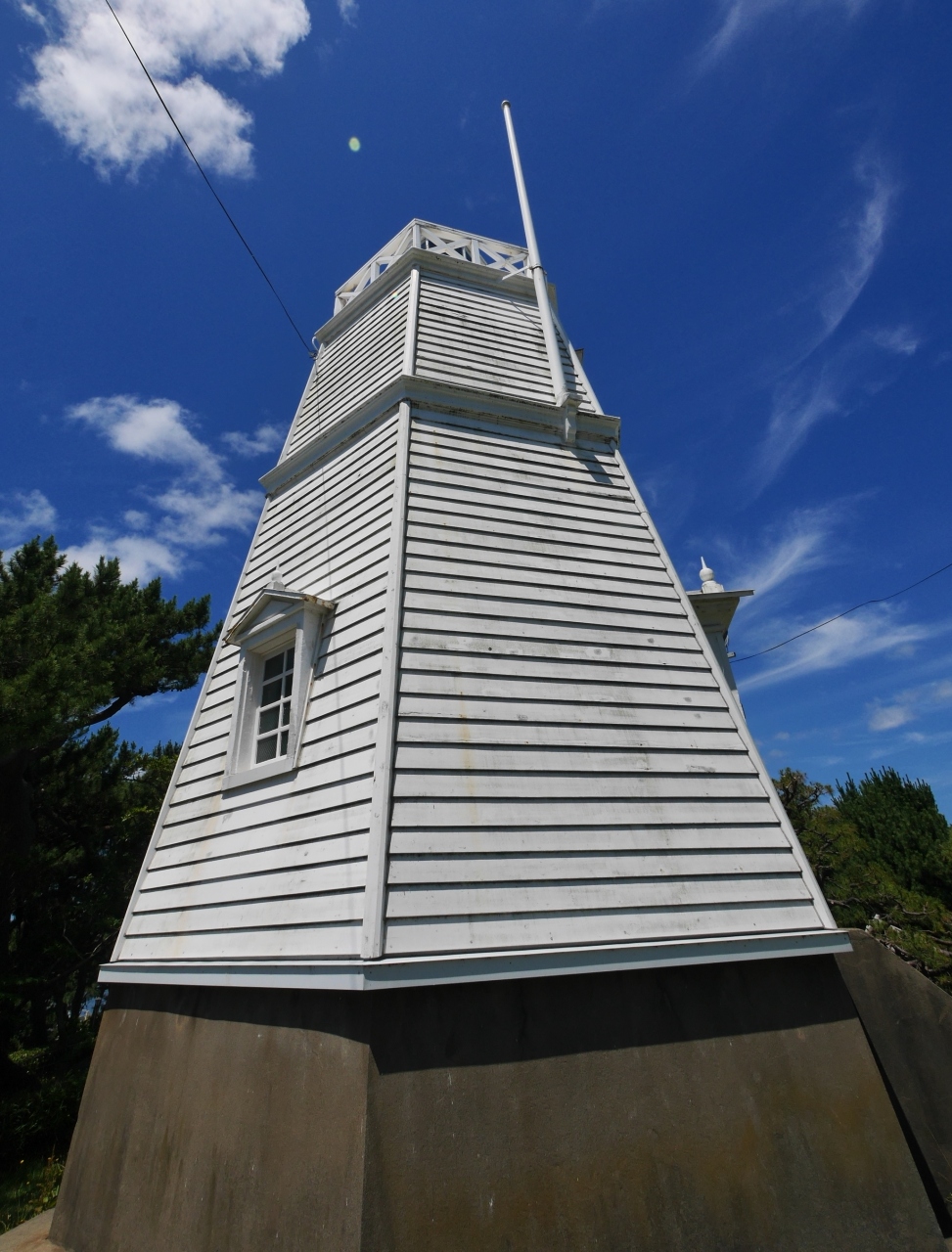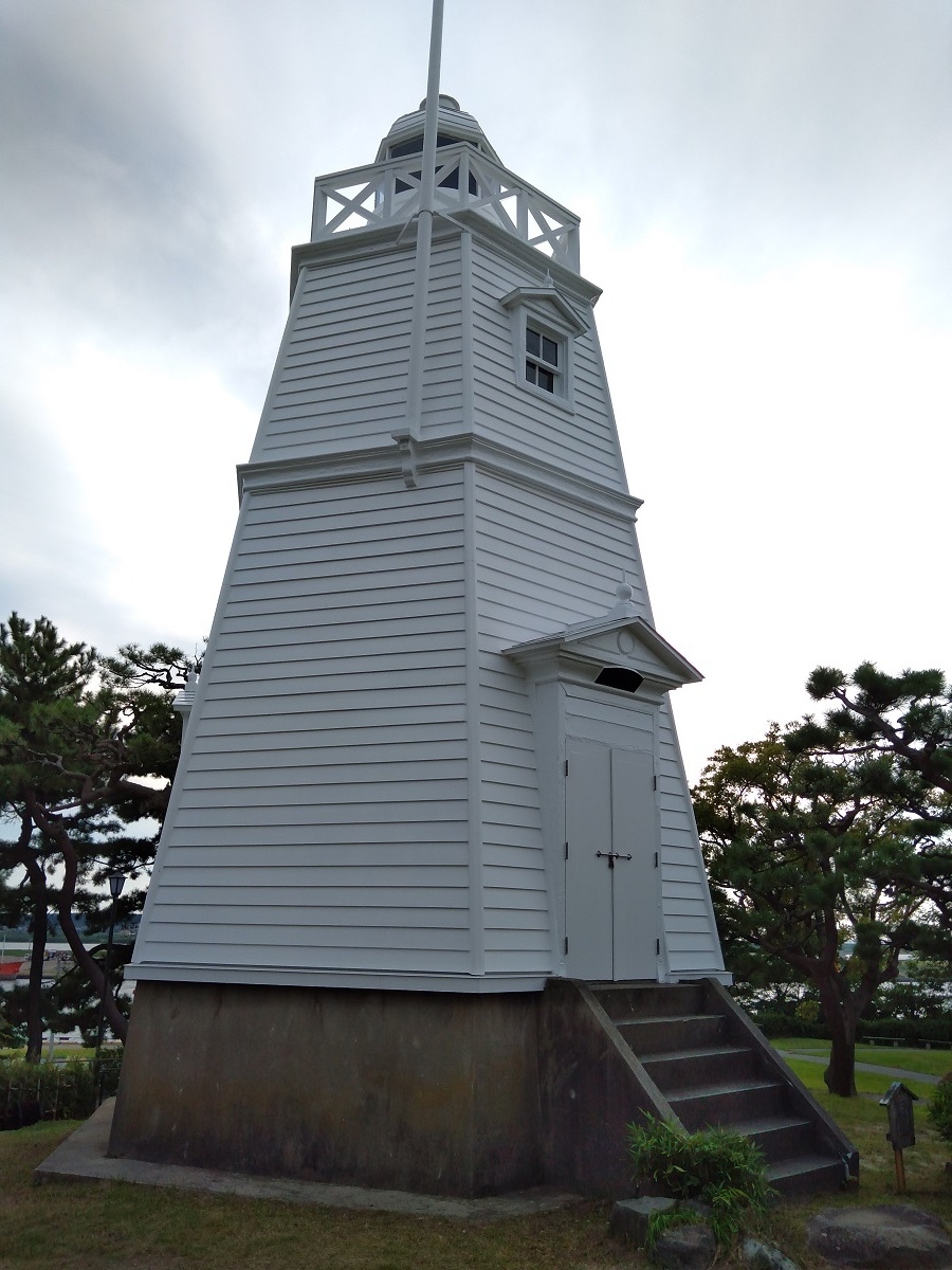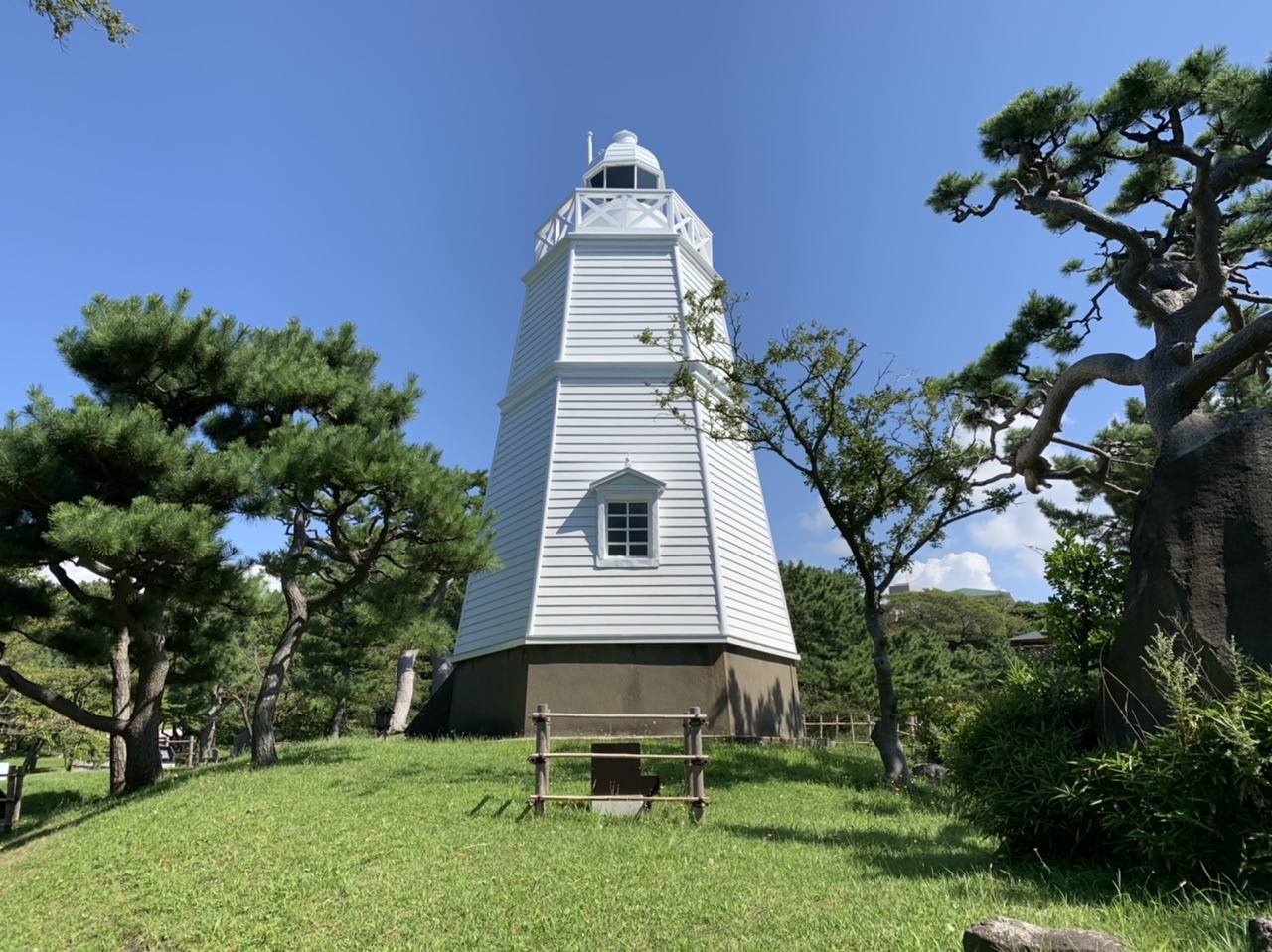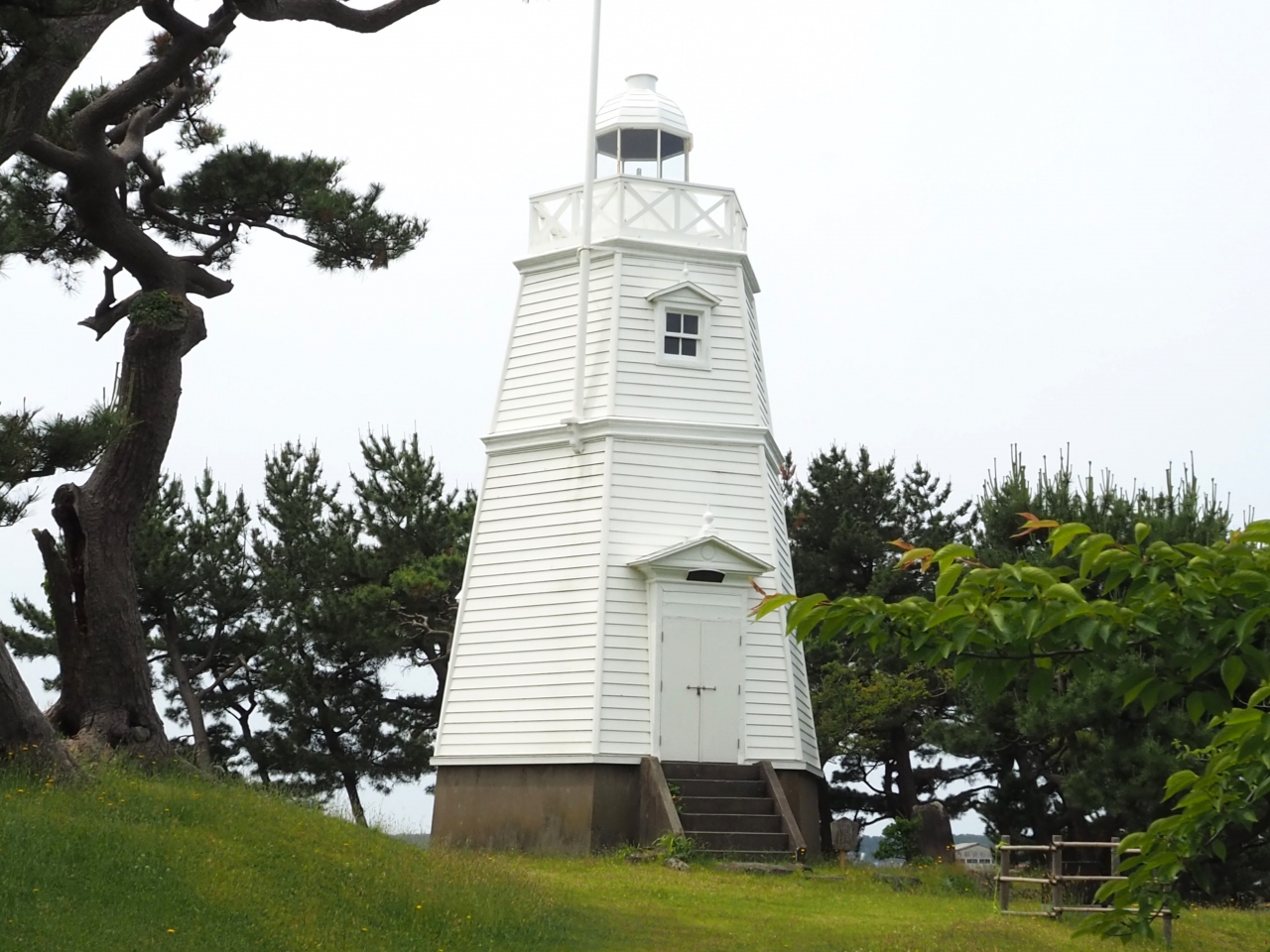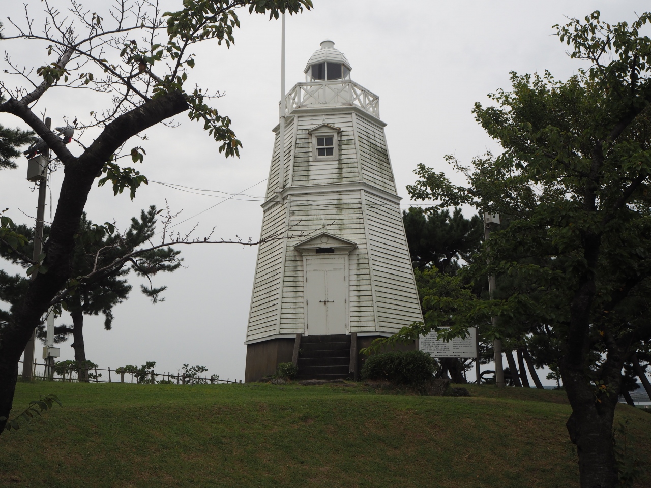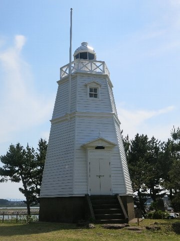 昭和33年、近代式灯台が完成し不用となり、現在地に保存されています。日本最初の洋式灯台は、明治2年(1869年)神奈川県観音崎灯台ですが、木造灯台として残っているのはこの灯台が最古のものと言われています。