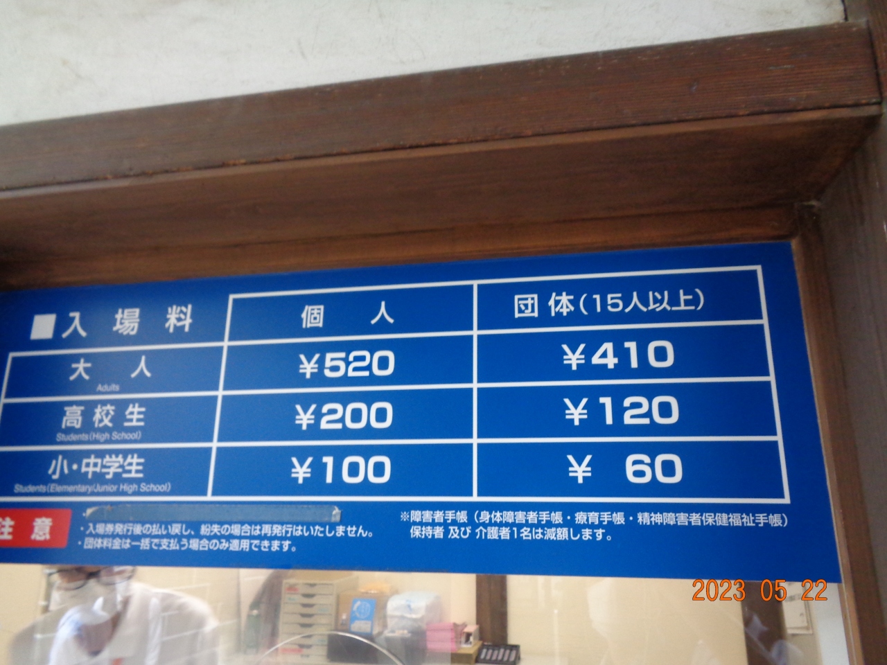 【料金】 大人: 520円 高校生: 200円 中学生: 100円 小学生: 100円