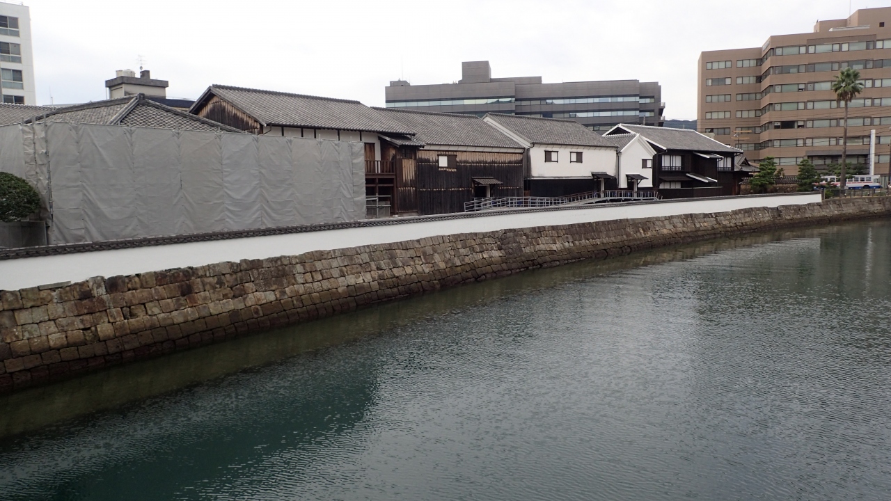 20世紀には埋め立てられ地続きになっ...  続きを読むていたのですが、復元事業で少しずつ周囲から切り離されるとともに建物が復元され、現在の形になっています。