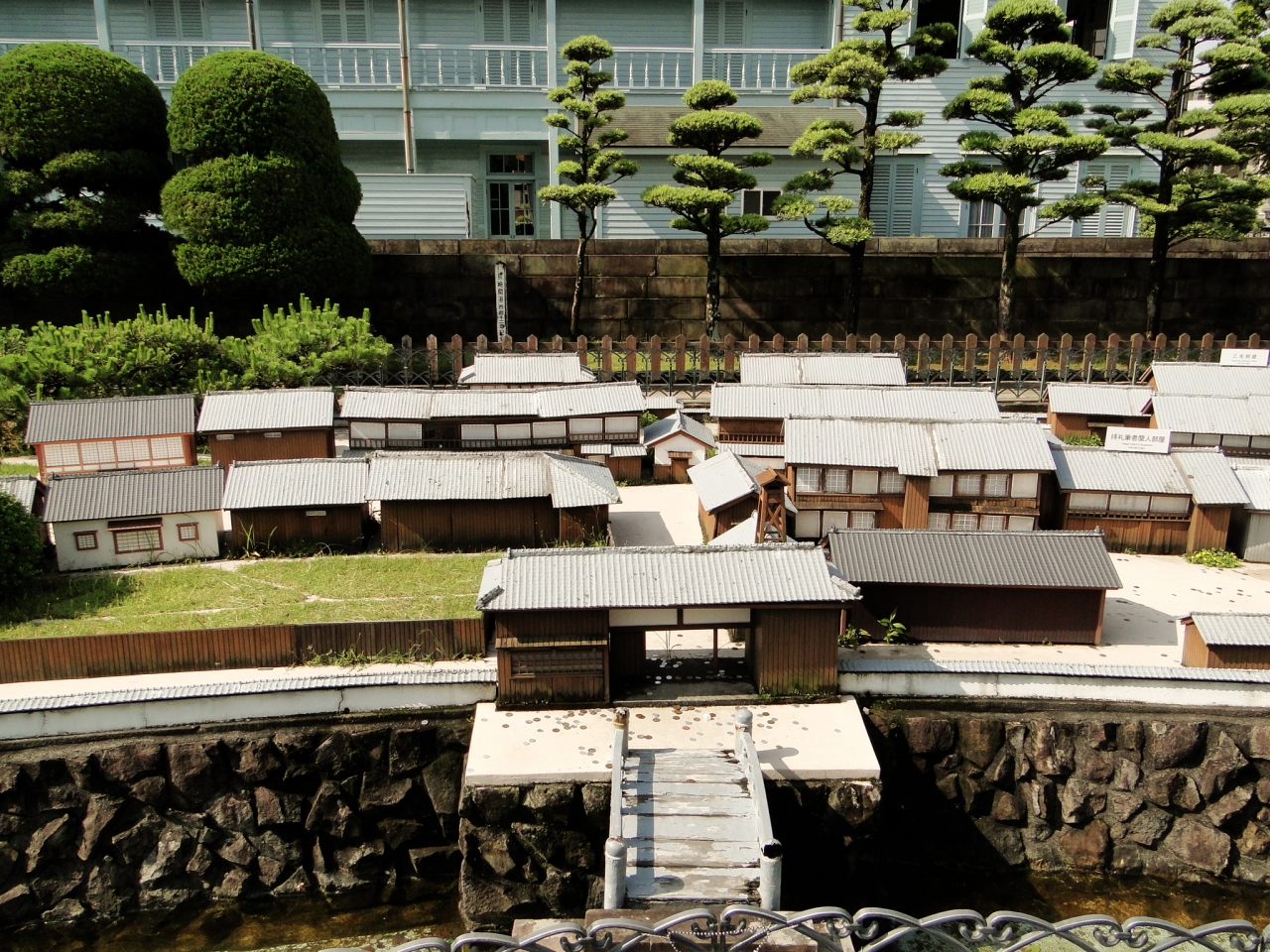 思いっきり街中で、しかもその狭さに驚きました。お堀が残っていなかったら、後から作った、小さなテーマパークな感じです。大きい...  続きを読む様な小さい様な洋館やらが色々建ててあり、それぞれに上がると結構見ごたえがあります。畳にベット、またそのベットが小さくて(座るように寝たそうです)面白かったです。  閉じる