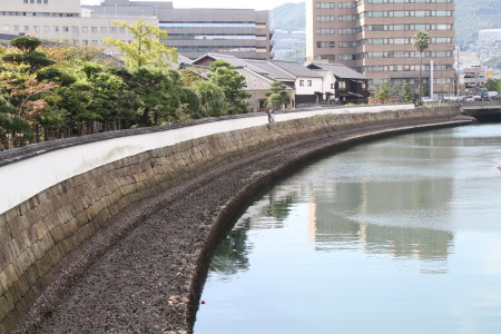 出島は、中島川の流路変更工事のため現在の川幅の半分くらいは削られたとのことです。それ故、この出島表門も本来あった場所に復元...  続きを読むされているわけではありません。それでも、出島の裏側、中島川越しにみる姿は格好よいです。  閉じる