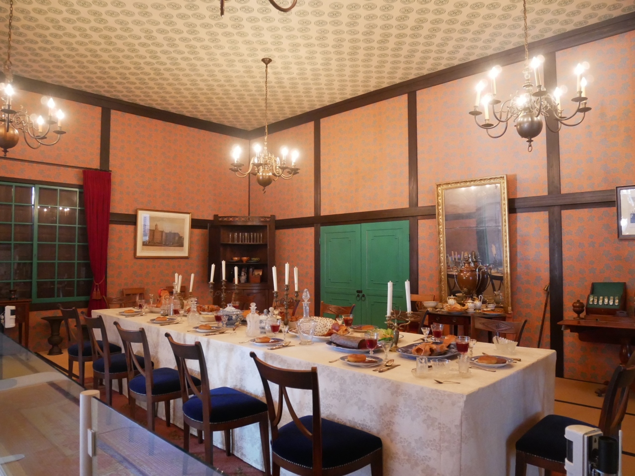オランダ商館長のことをカピタンと言い、そのカピタンが使用していたカピタン部屋は、出島で一番大きな建物です。外観を見ると、左...  続きを読む右から2階へ上れる屋根付きの階段が、お洒落な雰囲気を出していました。建物内では、様々な部屋を見学できます。その中も、大広間では当時の豪華な料理などが並んでいる様子が見られます。畳部屋にシャンデリアや洋風家具などが並んでいて、なかなか面白い風景が見られ、楽しめました。  閉じる