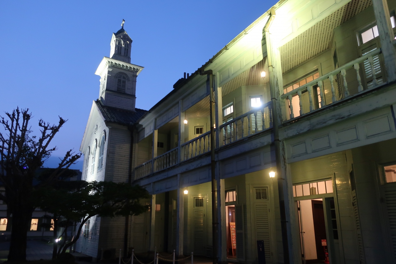 1878年(明治11年)に建てられた、日本最古のプロテスタントの神学校です。東側・明治ゲートからすぐのところに建っています...  続きを読む。ただ、私が訪れた時は、東側・明治ゲートは閉鎖中でした。1875年(明治8年)に創設された出島教会に隣接して建てられたようです。1階では資料が展示されていました。洋風の建物で、暗い時間に訪れたためライトアップされ、とても幻想的な雰囲気が出ていました。  閉じる
