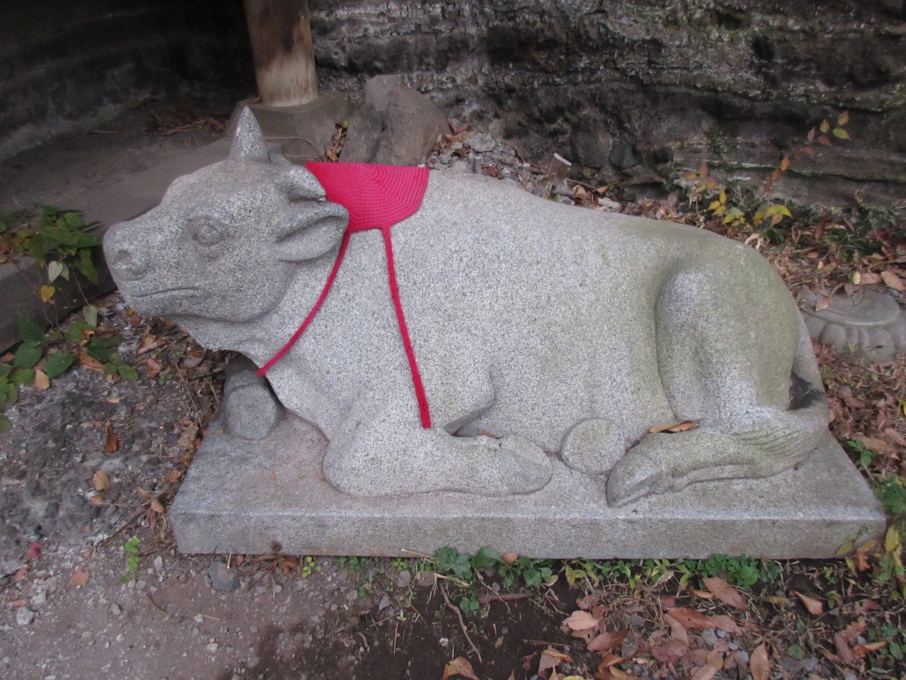 昔、強欲で意地悪な老婆が千曲川で布をさらしていると、牛に化身した観音様がその布を角にかけて善光寺に連れていき改悛させたという話です。また、他人の誘いによって、よいほうに導かれることのたとえを牛にひかれて善光寺参りというようになったようです。なお牛に化身した観音様は、断崖絶壁にかかる観音堂(重文)に安置されています。