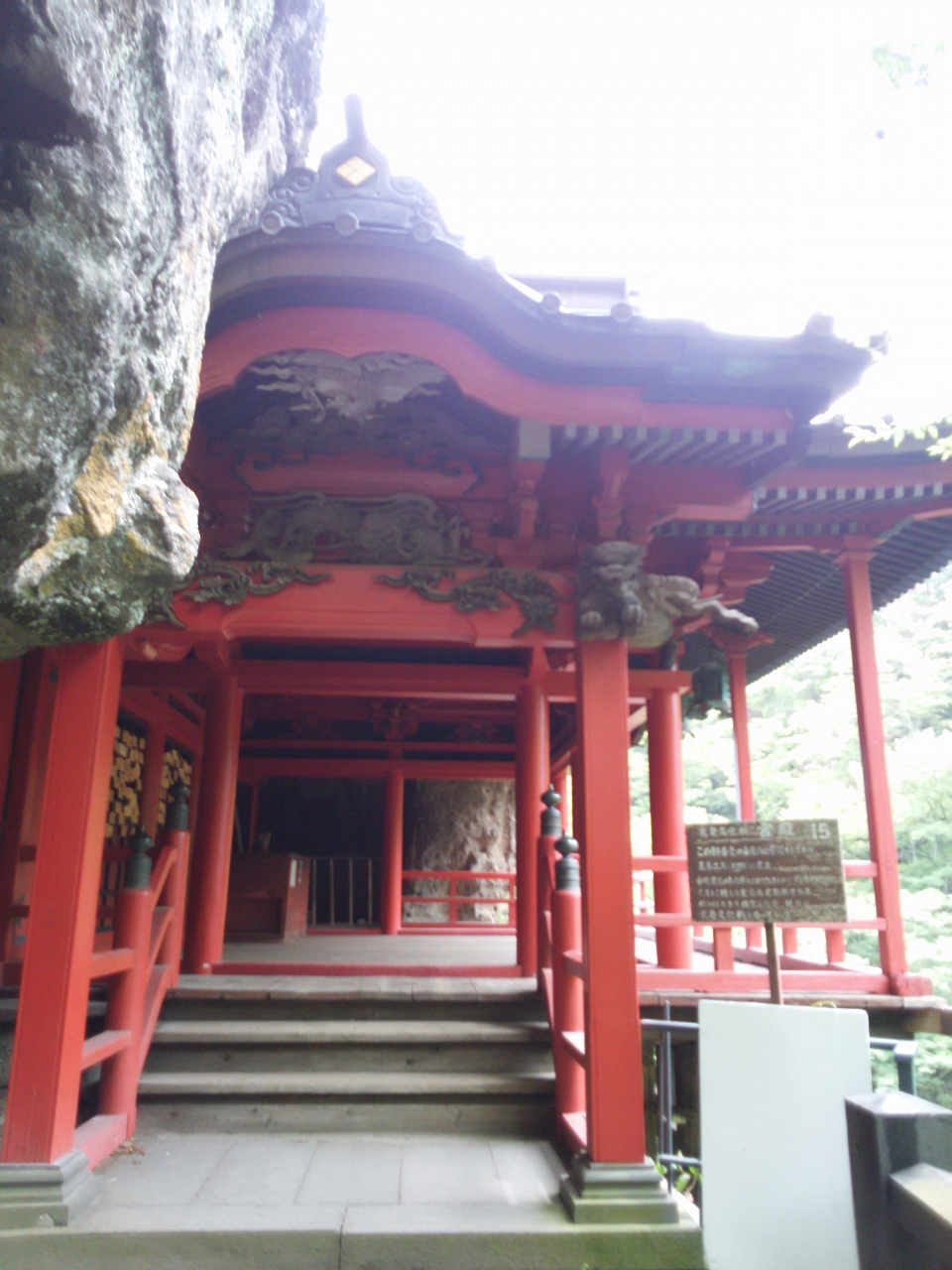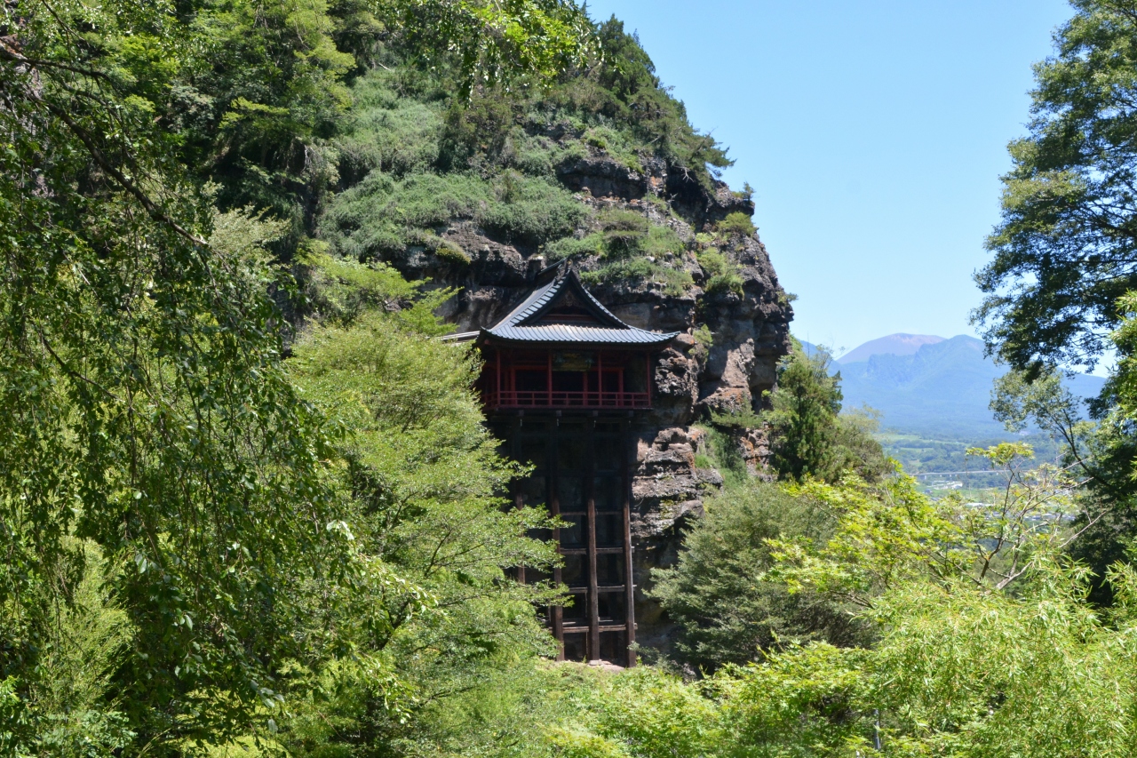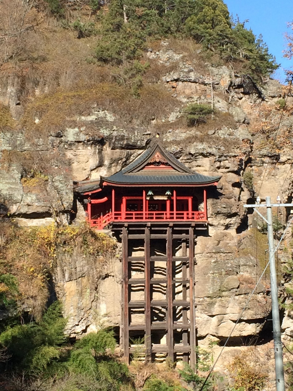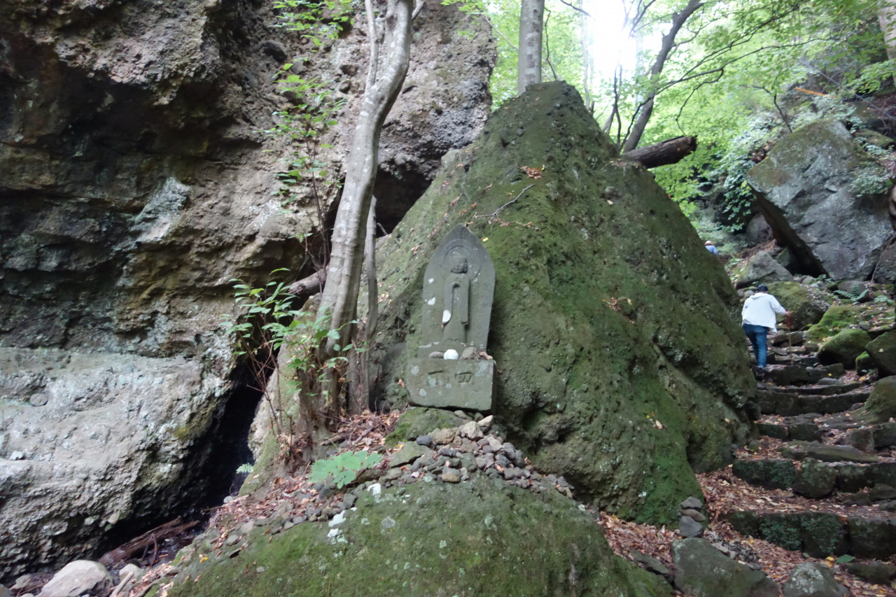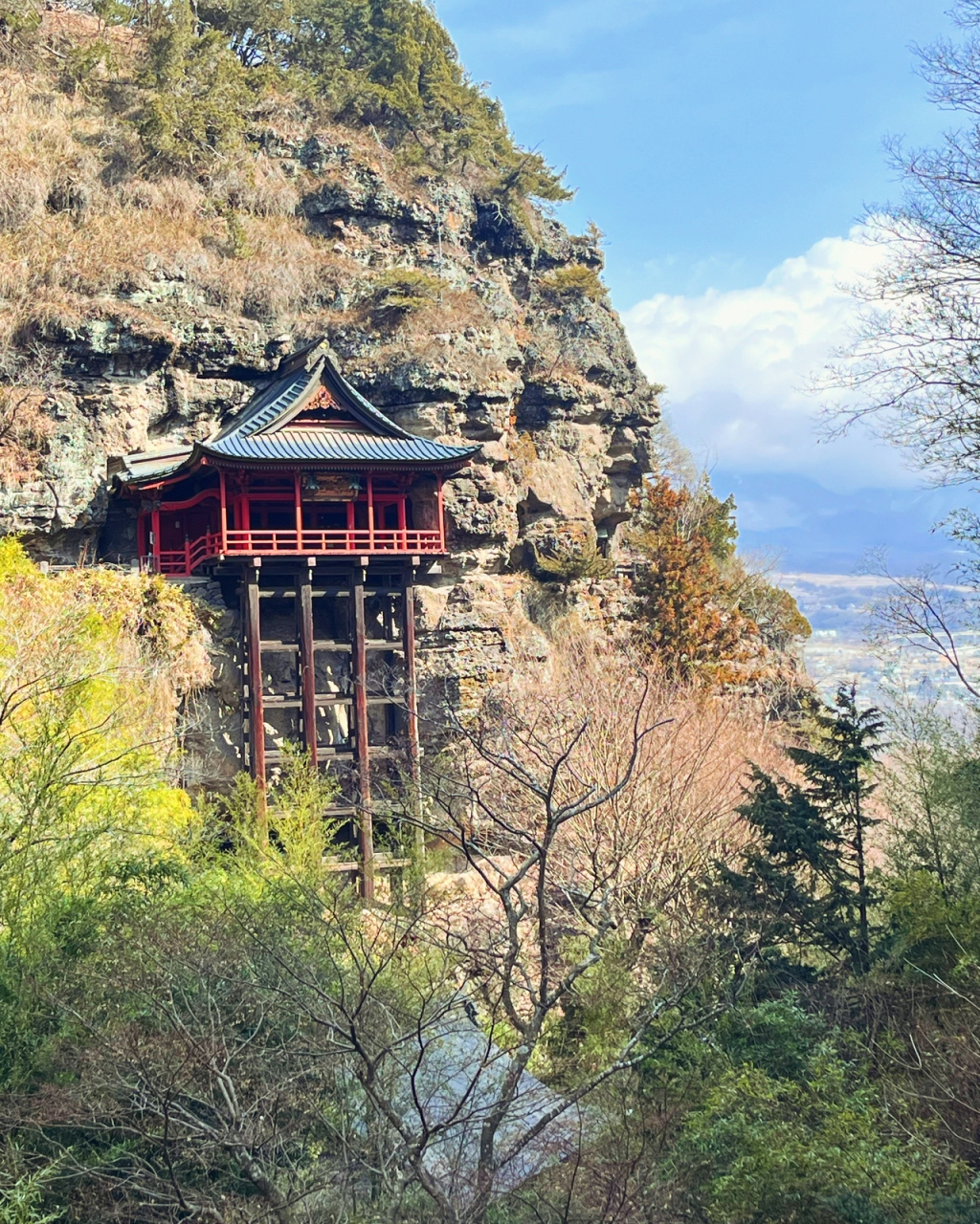 崖っぷち系が好きな人にはたまらない場所です。館山にある大福寺崖観音の山バージョンといったところでしょうか。スタスタ登って15分、ゆっくり登ると30分近くかかります。森の中の参道はちょっとしたトレッキングです。