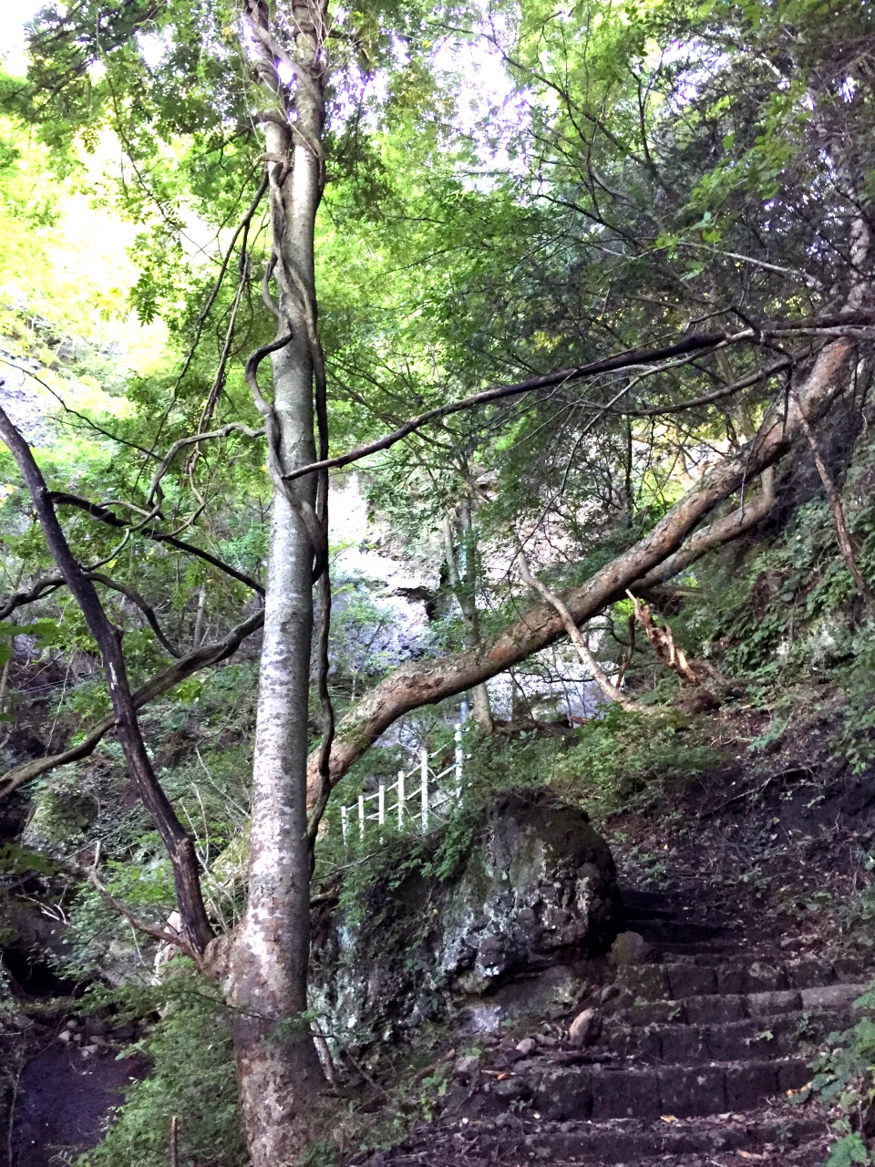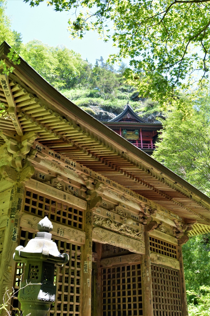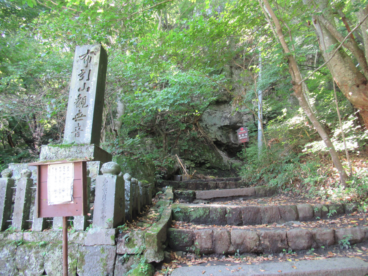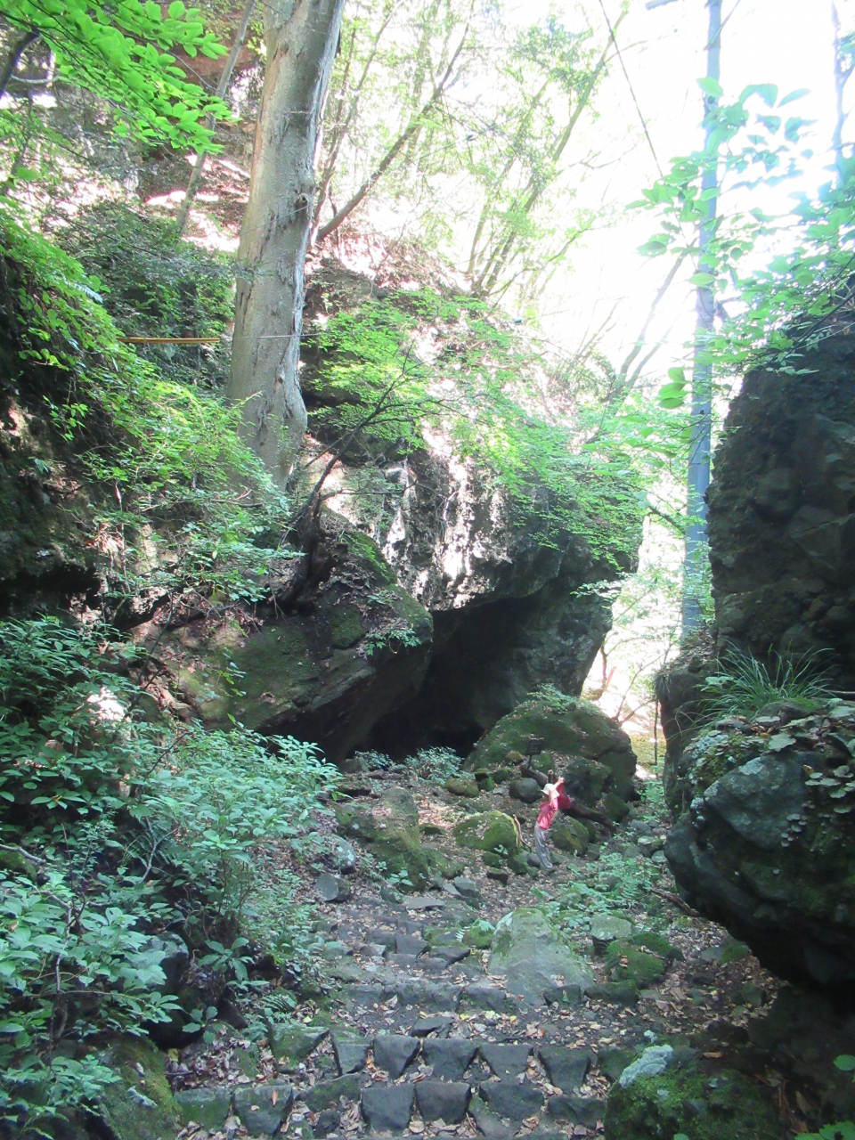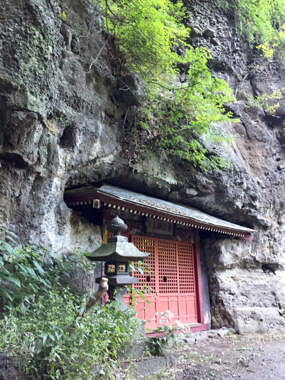 崖っぷち系が好きな人にはたまらない場所です。館山にある大福寺崖観音の山バージョンといったところでしょうか。スタスタ登って15分、ゆっくり登ると30分近くかかります。森の中の参道はちょっとしたトレッキングです。