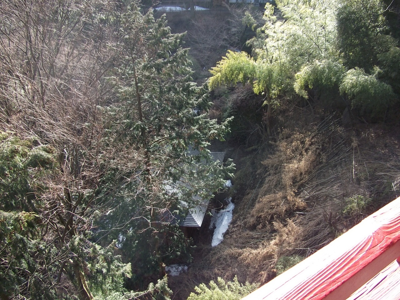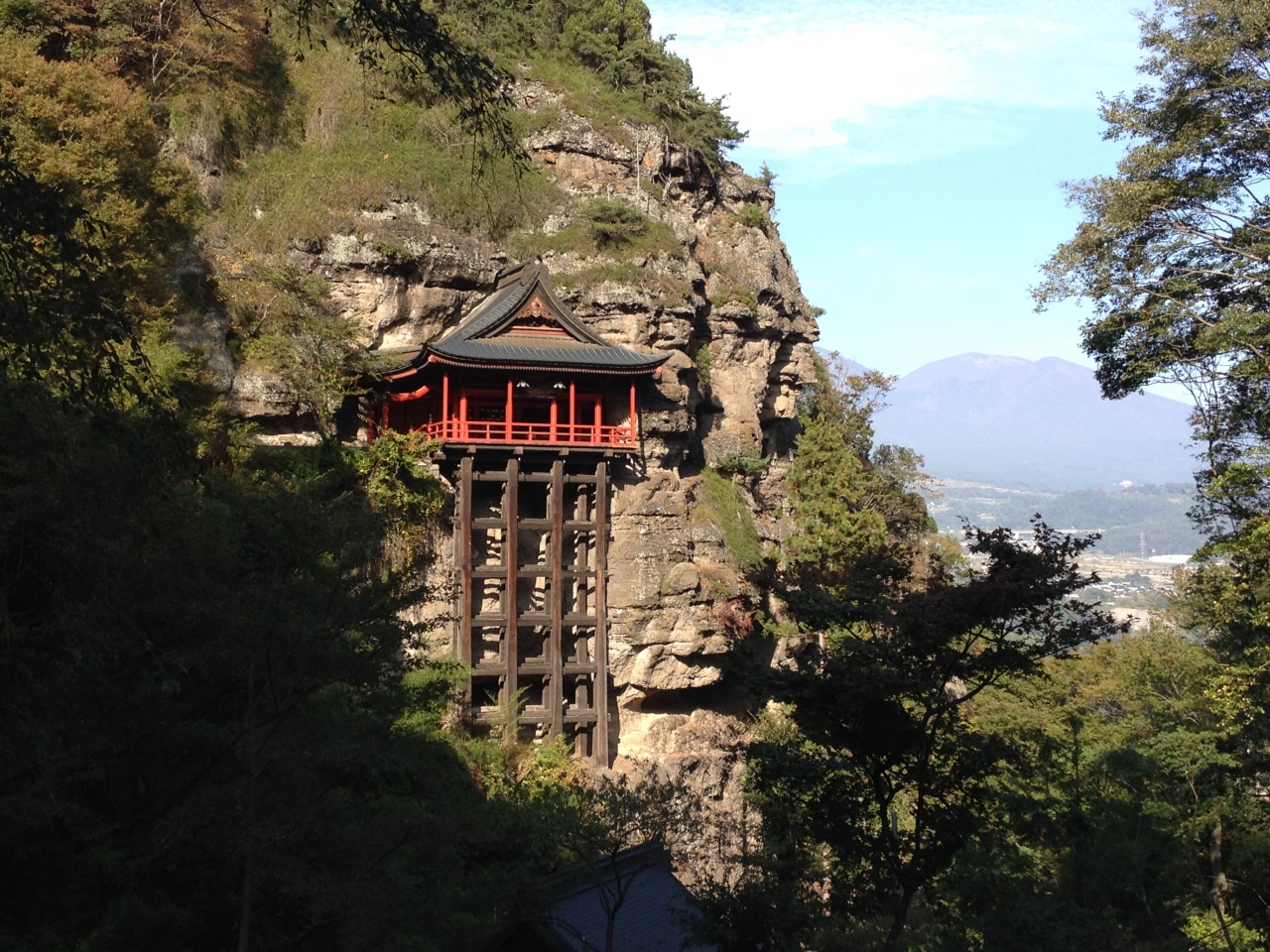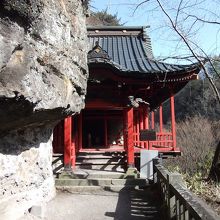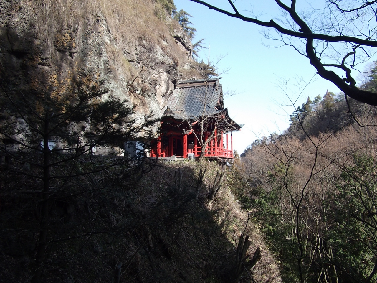 観音堂は崖に張り付いたように建てられていまして、危なっかしい姿