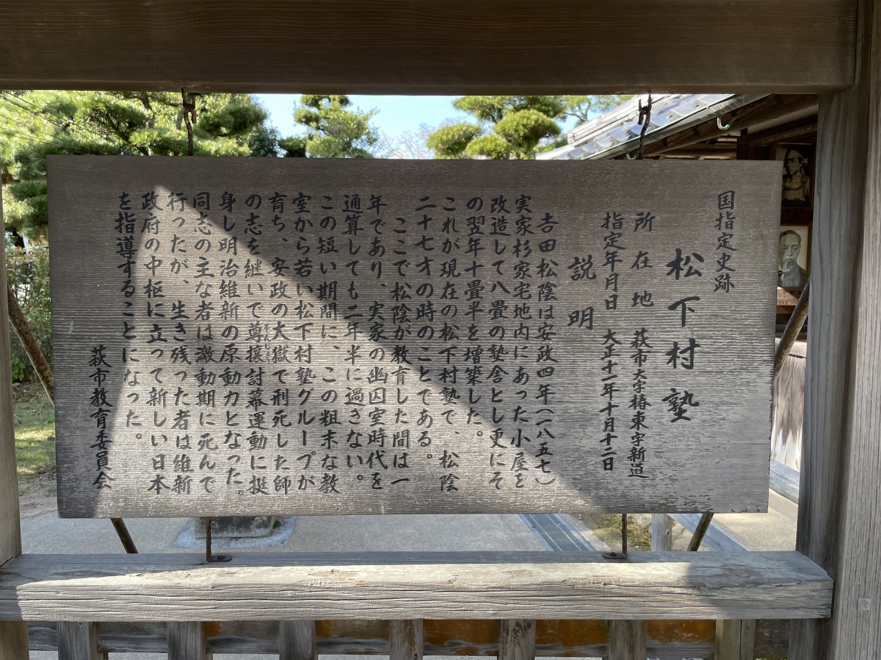 11歳の時に、萩藩主の前で兵学の講義を行った吉田松陰の私塾だった建物です。木造平屋建てで、8畳の講義室と10畳半の控室から... 続きを読む成る小さな建物です。講義期間は1年ほどだったようですが、高杉晋作や木戸孝允、伊藤博文など、明治維新で活躍した人材を育てた歴史ある建物です。歴史の変革期だったこともありますが、短期間で多くの人材を育てたことは素晴らしいと思います。 閉じる
