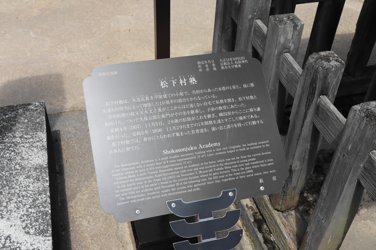 長州藩の藩校「明倫館」の師範を務めた吉田松陰が主宰した私塾。世界遺産!