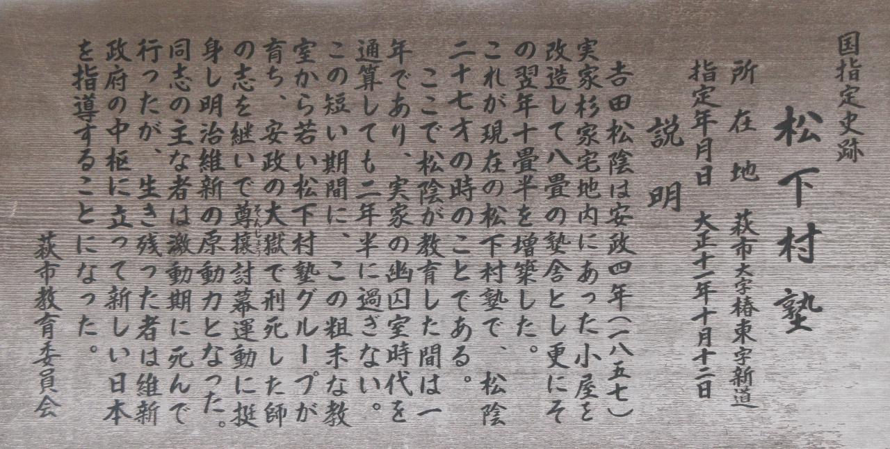 村下村塾(山口県萩):吉田松陰の私塾、萩の「明治日本の産業革命遺産」世界遺産の一つ