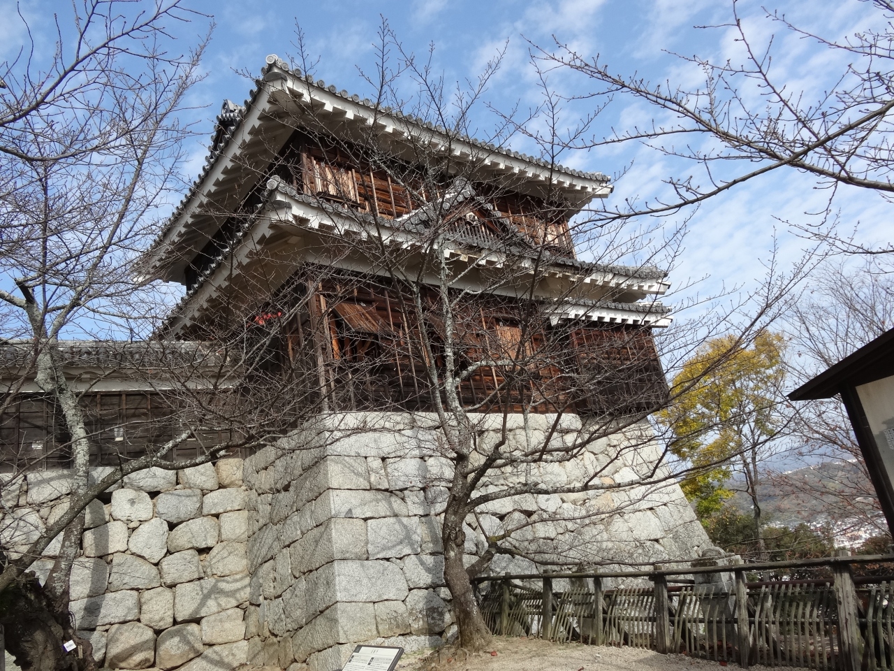 天守は現存で、そのほかに21棟もの重要文化財を数える松山城。 筒井門(隠門)、太鼓門とくぐるとまっすぐ【本壇】の入場料が...  続きを読む必要なエリアに進む観光客が9割、みたいです。ただ券売所の前に「注意書き」があって「紫竹門」「野原櫓」「乾櫓」の重要文化財3棟は【本壇】には所属していないので、それでは見落とすこと必至です。特に乾櫓は大天守からも見えはしますが、ちゃんと見ようとすると乾門をいったん出ることになるので「そこまではいいか」とけっこう敬遠されがち。 今回個人的には乾門を出たところで乾櫓を南からしっかり撮れたばかりでなく、乾門東続櫓東折曲塀越しの本壇方向は「松山城にこんなアングルもあるんだ!」と納得した次第。 さらに3月だったので乾門外で「ウメジロウ」=梅の花とメジロにも遭遇してむちゃくちゃ満足しました。本壇の閉場近づく午後4時台にそんな場面に遭遇するとはまったく想像しませんでした。  閉じる