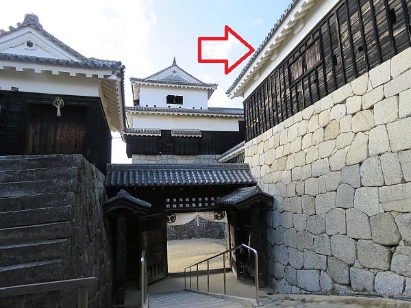 松山城本丸にある紫竹門の手前に立ちはだかる壁です。重文指定を受けている現存遺構です。高い石垣の上にあり、狭間から敵の頭上に...  続きを読む鉄砲や矢で射かけられるようになっています。しかも、左側面の紫竹門東塀、右側面の小天守からも同様の攻撃を受けるようになっています。この先本壇にある天守まで、三方、四方の頭上から一斉攻撃を受ける構造が続くので、この城を攻める戦法の兵にだけはなりたくないなと思いながら見学しました。  閉じる