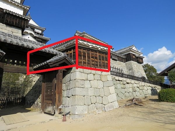 松山城でも重要な門の一つである筒井門に攻め込む敵を迎え撃つため、筒井門のすぐ横というか、奥に隠された形で存在する門です。で...  続きを読むすが以外にも上部分と横には続き櫓があって、入り口は大きくはないですが、筒井門と比べても遜色ない門になっています。  閉じる