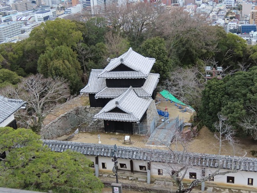 松山城本丸跡にある建築物で、RC造による復元櫓です。もともとのものは、先の大戦で焼失しています。現在、松山城の管理事務所と...  続きを読むして使用されています。外壁にはスピーカーやら何かしらの機器やらいろいろと取り付けられていて、残念な感じがしました。さらに、本丸外側の石垣と天守のある本壇を一緒に見ることができるベストビューの場所から撮影すると、この見てくれの悪い櫓が映り込んでかなり興ざめです。原状回復をしてほしいと思います。  閉じる
