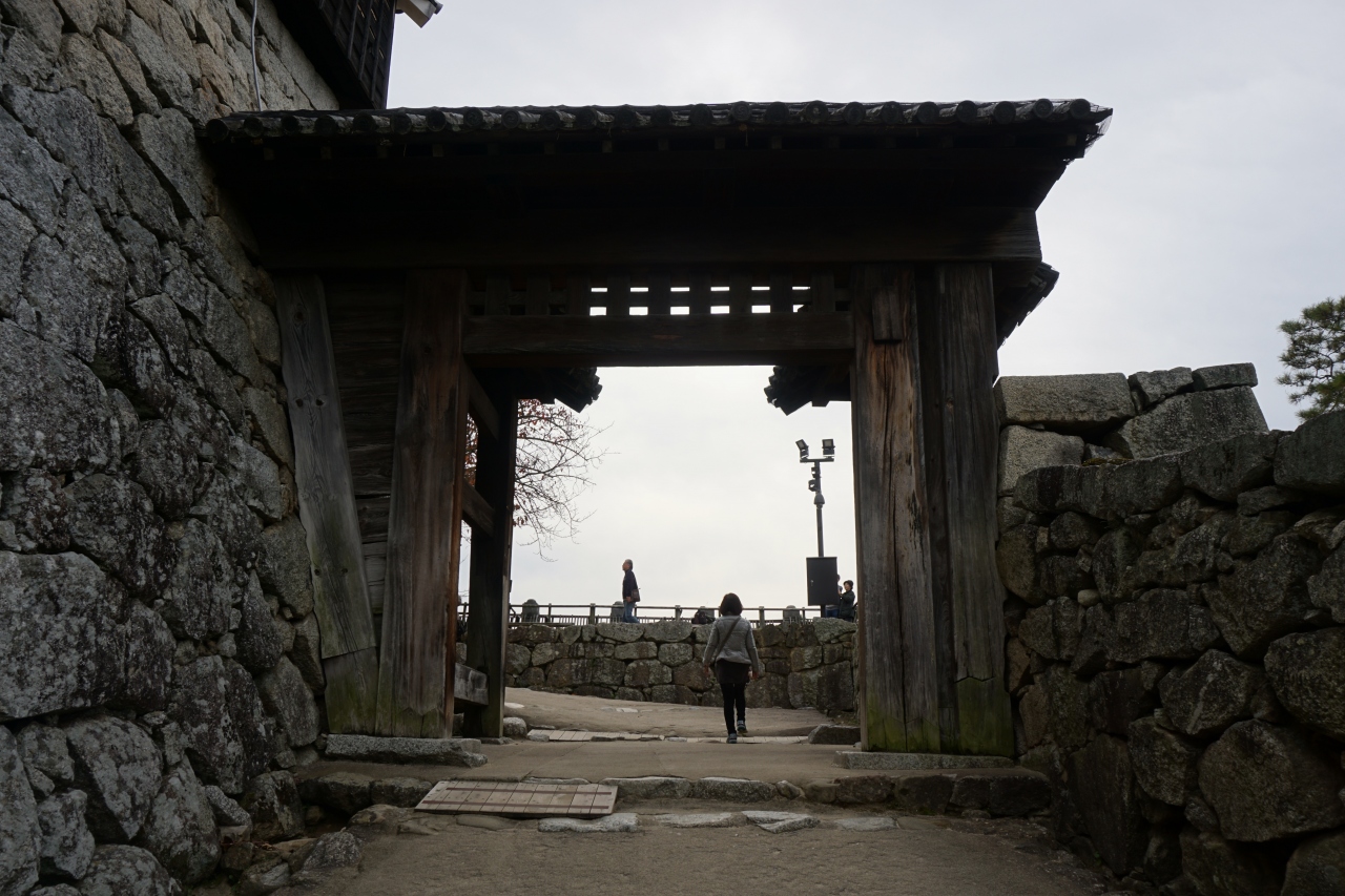松山城の戸無門は、ロープーウェイから松山城の天守閣を目指すと最初の門。大手登城道に設けられた高麗門で、石垣の間に窮屈そうに...  続きを読む建っています。