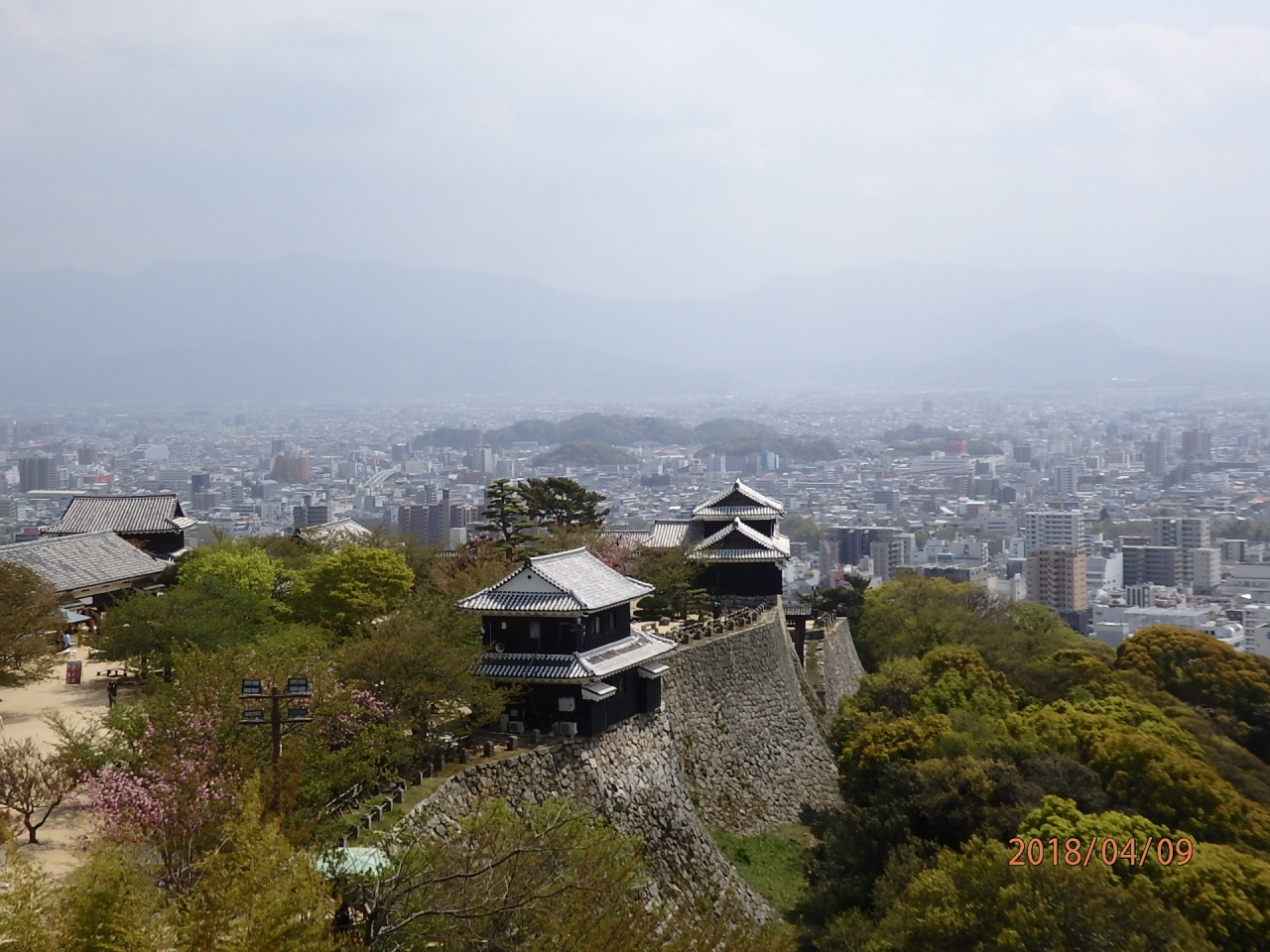 • 日本100名城の松山城を訪れた。もちろん現存天守を有する12ヵ所の一つで、姫路城、松本城には及ばないが、それに次ぐ規模であ...  続きを読むる。松山市のほぼ中央、標高132mの勝山山頂に建てられているが、分類上は平山城だそうだ。アクセスは松山駅から徒歩30分、または市電の大街道駅で降りてすぐ、ロープウェイに乗って数分で到着する。