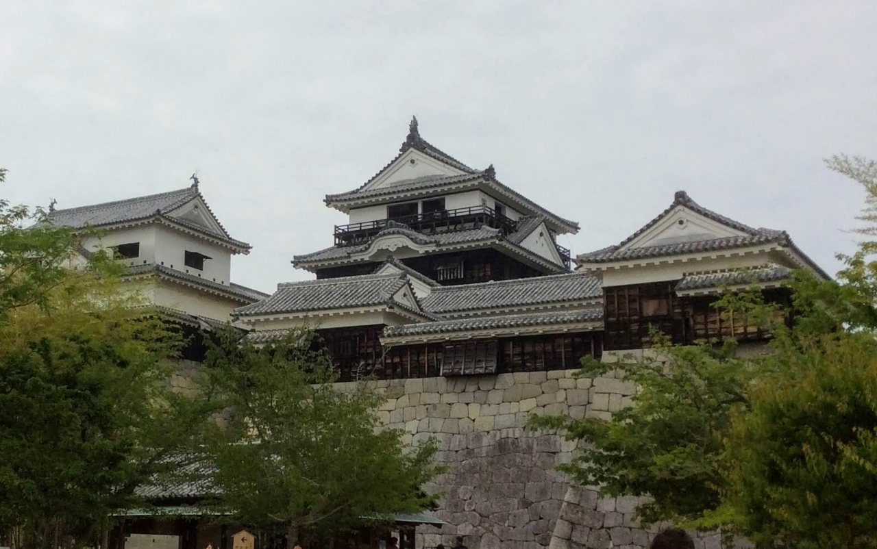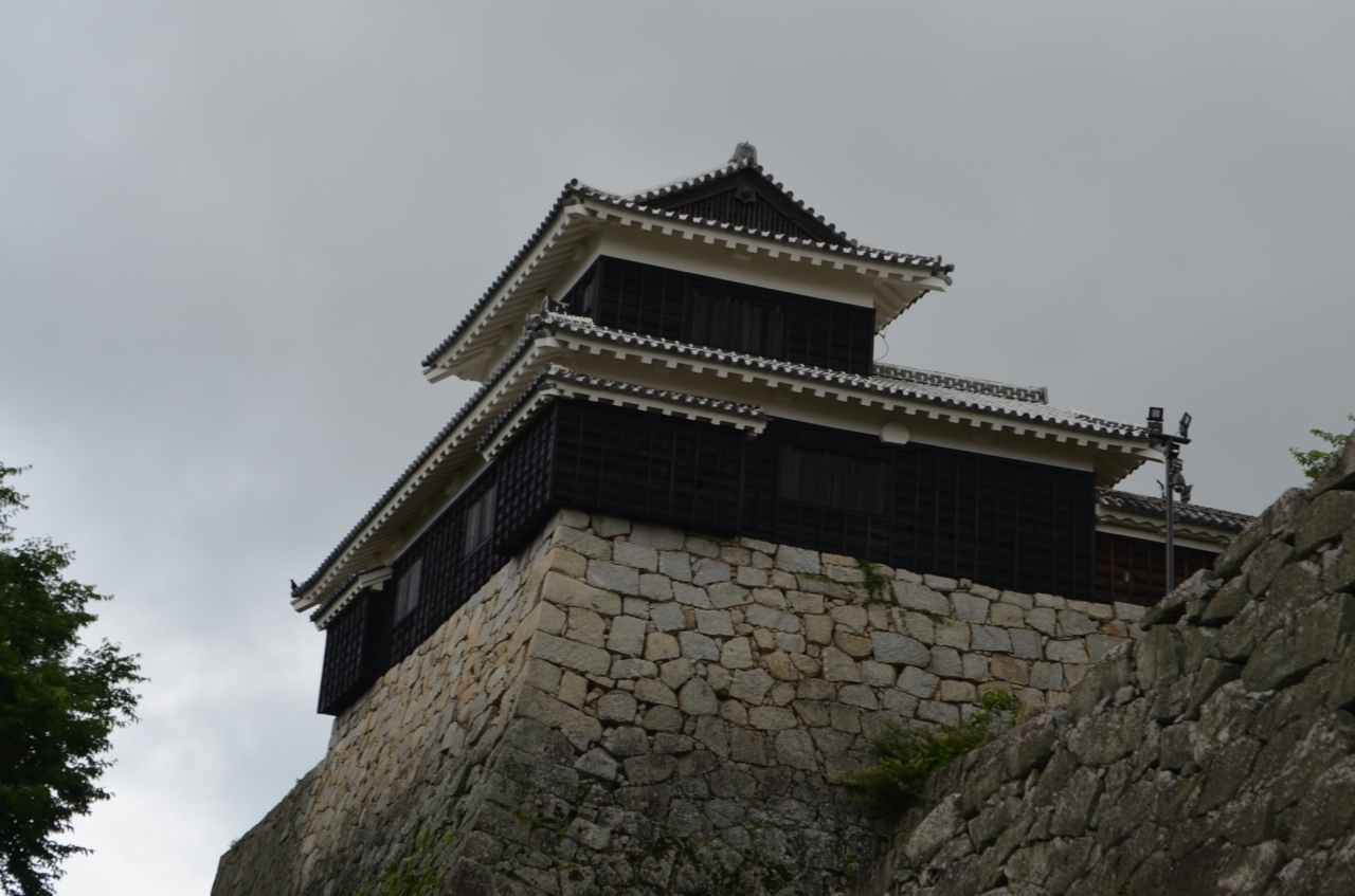 築城は関ヶ原合戦後の1602年、完成まで25年かかっている。「現存」といっても現在の天守は1854年に再建されたもので、天守は3重3階建て、小天守、隅櫓と連結された独特の形状で、内部は急な階段や、黒ずんだ柱や梁など本物の城の迫力を持つ。大天守からは城下町を一望でき、その眺望は素晴らしい。また石垣の高さは16mもあるなど、見ごたえに満ちた名城だ。