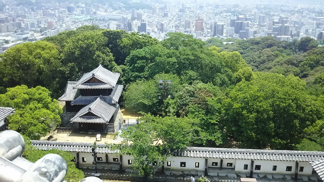 ロープウェイから10分程度歩きます。本丸から見た天守は、三階建てのためか、姫路城などと比べると小さい感じがしましたが、城山...  続きを読む(勝山)山頂に建っているため、天守の標高は約161mあり、「現存12天守」の平山城の中では最も高い城郭だそうです。天守からの眺めは良かったです。  閉じる