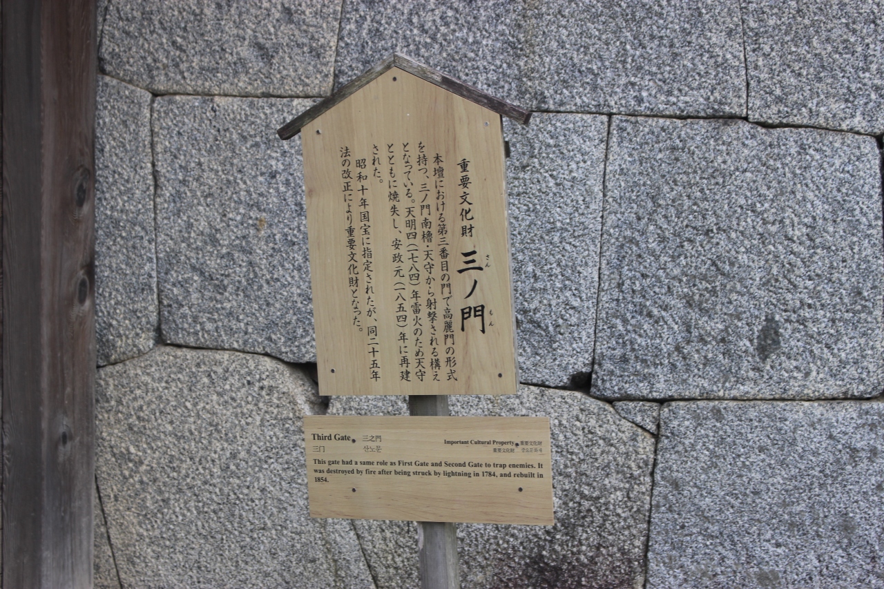 松山城の天守に入るために、入場料を支払い、一ノ門、二の門とくぐって最後の門です。