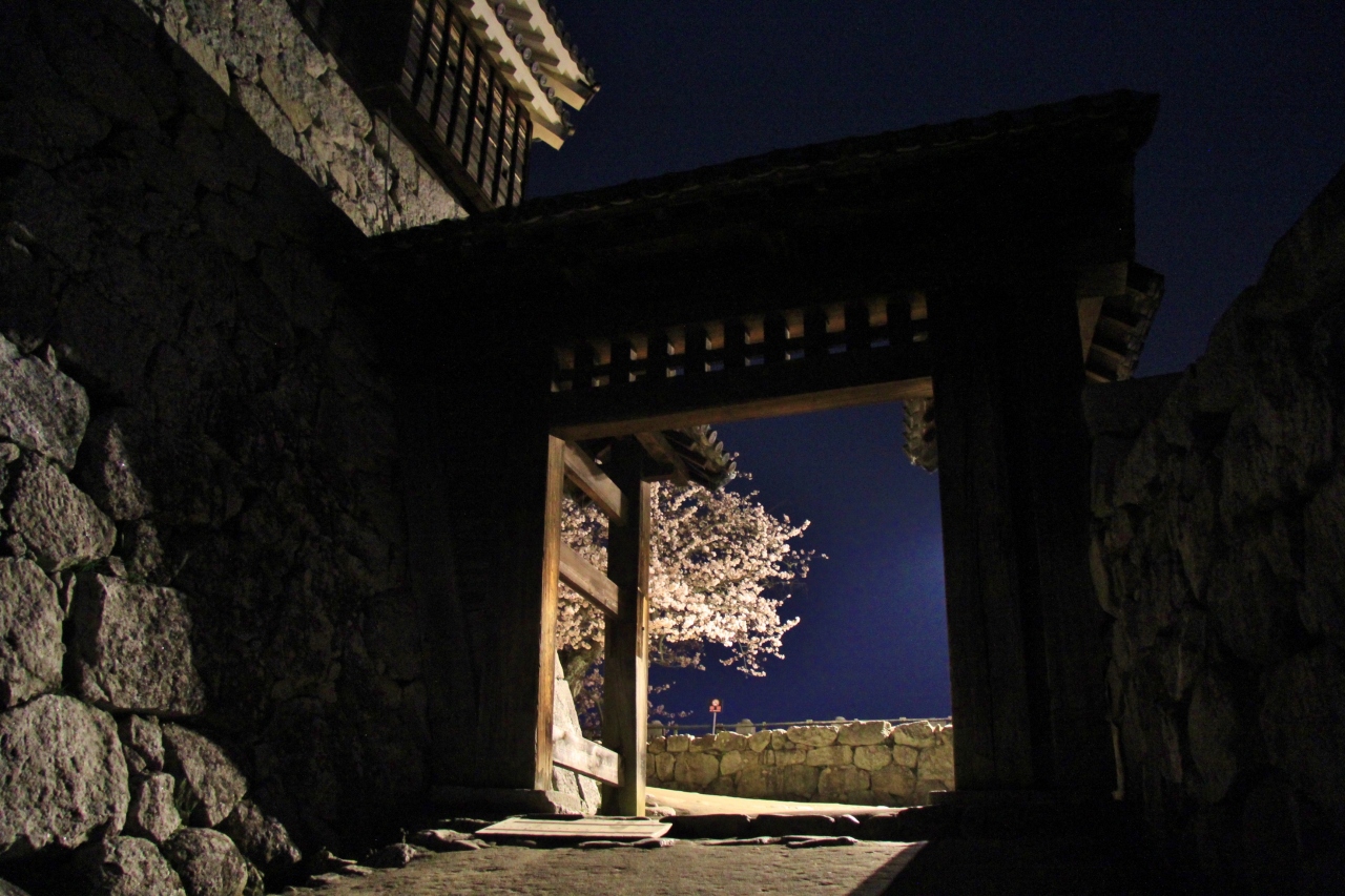 本丸広場では18:00~20:50までライトアップしています。ライトアップされる時間帯はリフトもロープウェイも運行されていないのでここまで登って来られる方は少なく静かに幻想的な花見が出来て良かったです。
