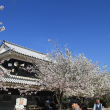 ライトアップの時には戸無門がまるで額縁の様に背後の桜を引き立てていて綺麗でした。  閉じる