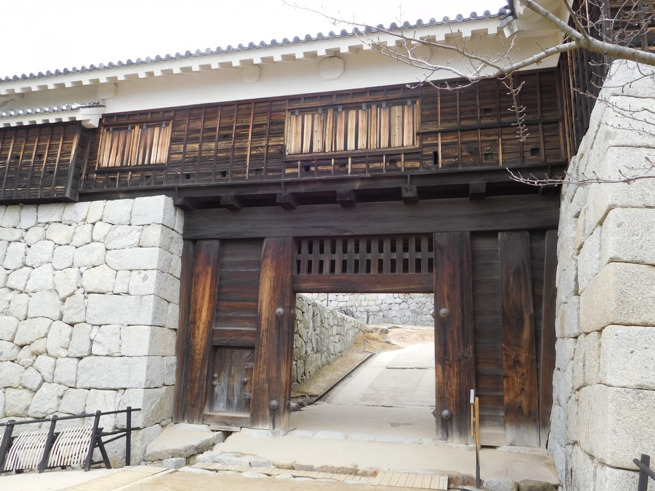 松山城の本丸広場に向かう手前側にあり、多くの人が通る「筒井門」の奥の方にひっそりとした感じでありました。一瞬、どちらの門を...  続きを読む通れば良いのか迷ってしまいましたが、筒井門の方を通り過ぎてから振り返って見ると、確かに隠れるような形で門があるのが分かりました。  閉じる