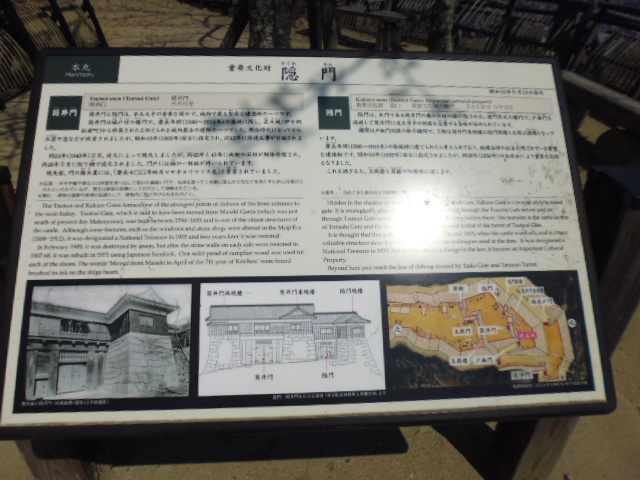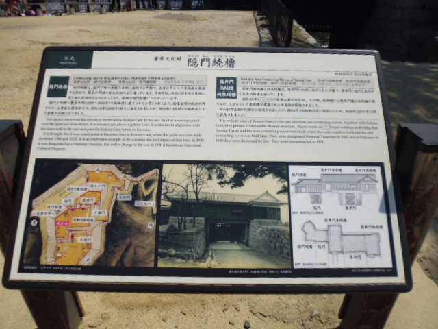 筋鉄門は天守玄関を防衛する重要な門でもあります。松山城に行く道すがら...  続きを読む、いろいろな案内板があるのでよくわかりますが、こういう細かい塀の解説などはあとから写真を見直さないと難しいですね。  閉じる