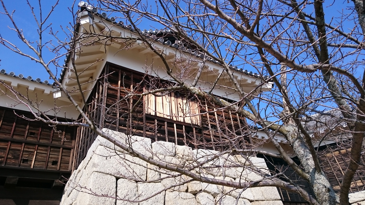 天守は現存で、そのほかに21棟もの重要文化財を数える松山城。 筒井門(隠門)、太鼓門とくぐるとまっすぐ【本壇】の入場料が...  続きを読む必要なエリアに進む観光客が9割、みたいです。ただ券売所の前に「注意書き」があって「紫竹門」「野原櫓」「乾櫓」の重要文化財3棟は【本壇】には所属していないので、それでは見落とすこと必至です。特に乾櫓は大天守からも見えはしますが、ちゃんと見ようとすると乾門をいったん出ることになるので「そこまではいいか」とけっこう敬遠されがち。 今回個人的には乾門を出たところで乾櫓を南からしっかり撮れたばかりでなく、乾門東続櫓東折曲塀越しの本壇方向は「松山城にこんなアングルもあるんだ!」と納得した次第。 さらに3月だったので乾門外で「ウメジロウ」=梅の花とメジロにも遭遇してむちゃくちゃ満足しました。本壇の閉場近づく午後4時台にそんな場面に遭遇するとはまったく想像しませんでした。  閉じる