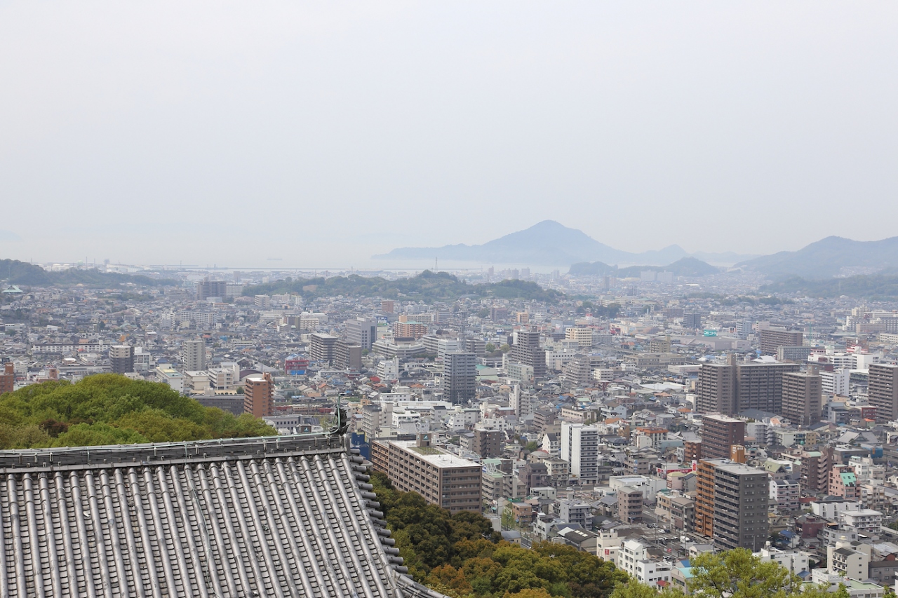 天守閣前の広場からの眺望も良く、瀬戸内海が見えます。