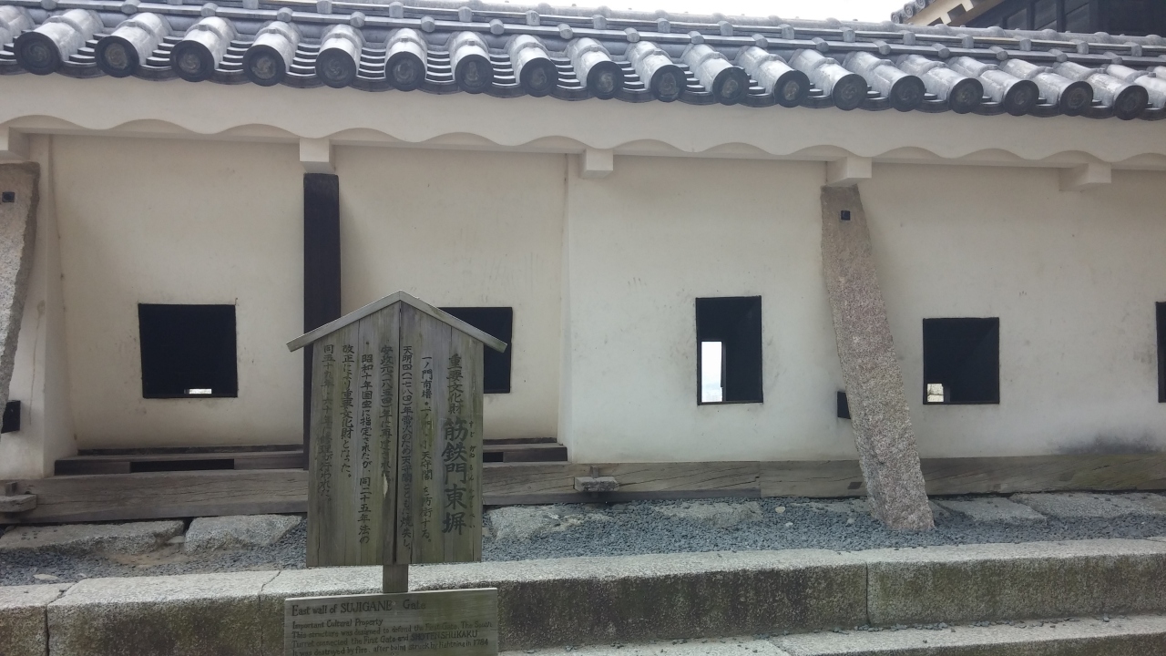 松山城紫竹門東塀は一見すると普通の壁に考えてジナチギやすいが塀の前に立てられている標識を見て出なければ重要文化財のいずれか...  続きを読むであることを知りました。紫竹門東塀も1784年落雷に打たれ消失したことを1854年に再建したとします。壁の小さな穴を介して銃と弓を撃って敵を防いだとします。