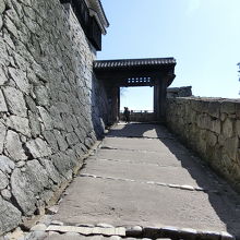 平山城に下から登るのは大変なので、リフトで八合目へ。石垣を眺めたり、門をくぐって徐々に天守閣に近づく。