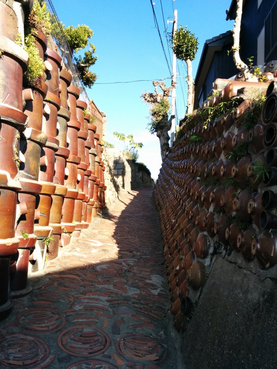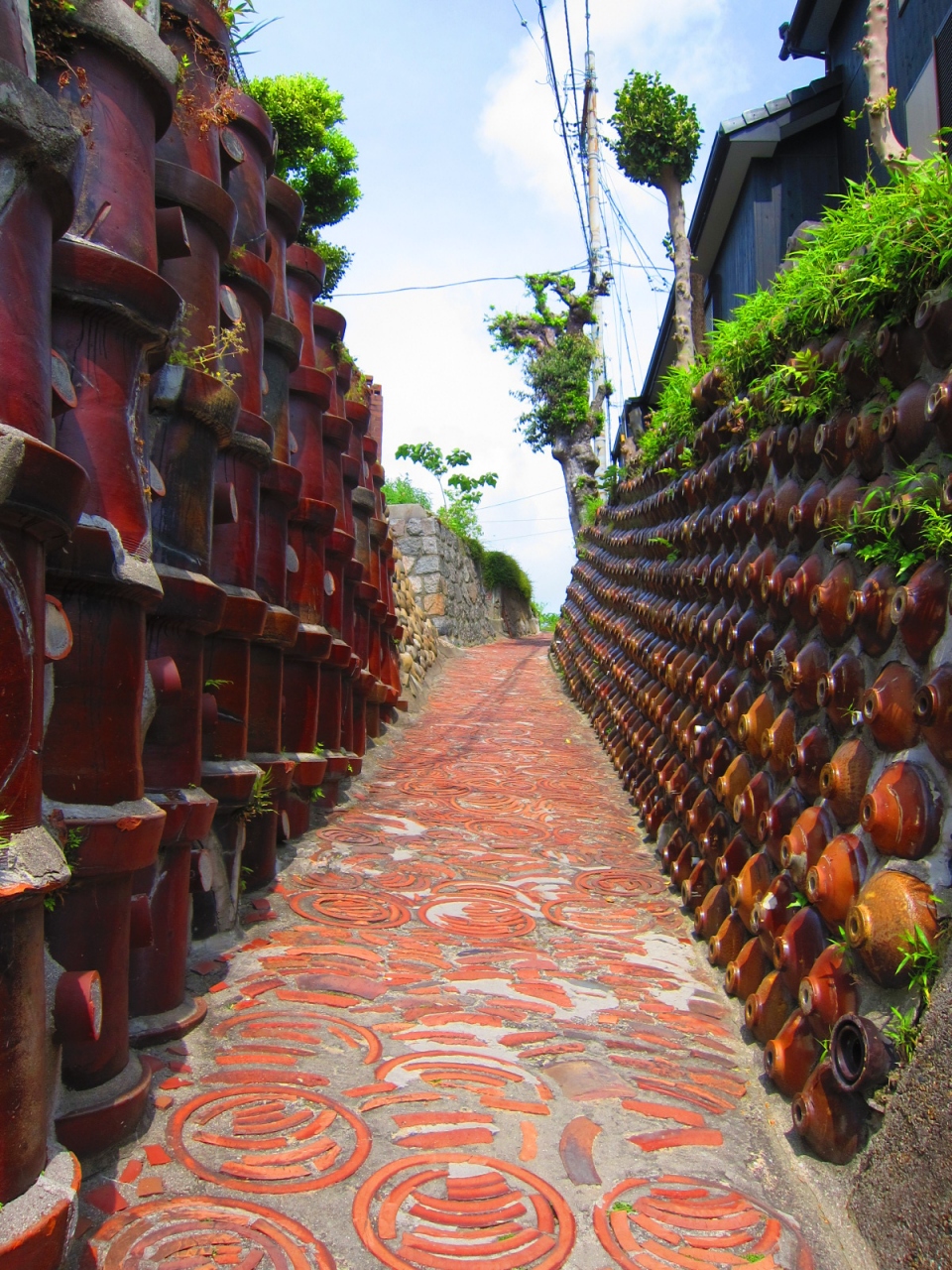 常滑の陶磁器でアレンジされたお洒落な散歩道。焼き物の施設や陶磁器を見て回れる。