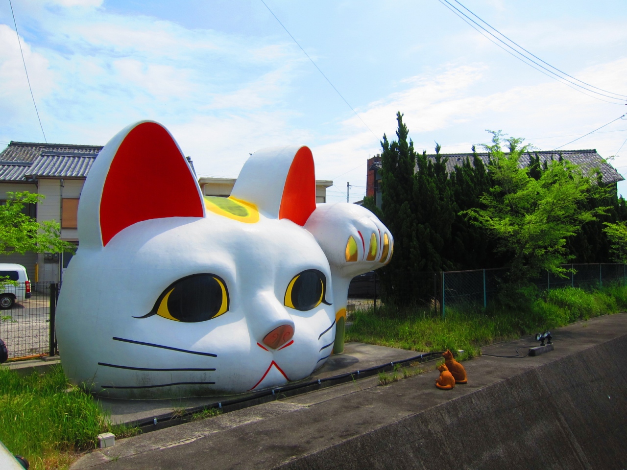 日本の招き猫の大半はこの常滑で作られている。 色々な顔をした猫、猫、猫。