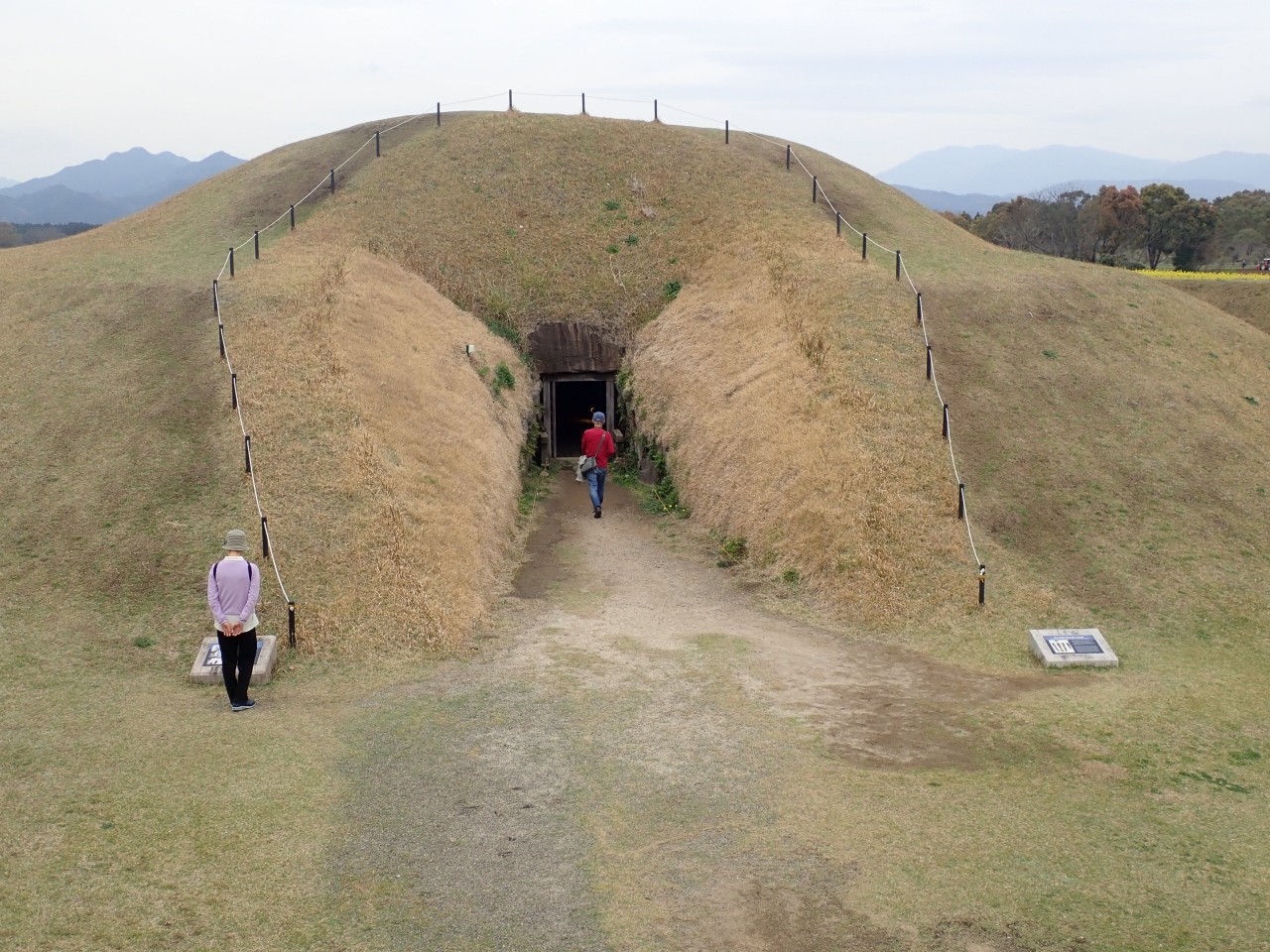 西都原古墳は1から3群に別れています。4~7世紀に作られた前方後円墳、円墳、方墳などが点在しています。全体を見るには2時間程度は必要でしょうか。内部を見学できる古墳も3カ所(1カ所は修理中)あります。公園入口近くにある鬼の窟古墳は横穴式石室を採用している古墳で内部を見学できます。