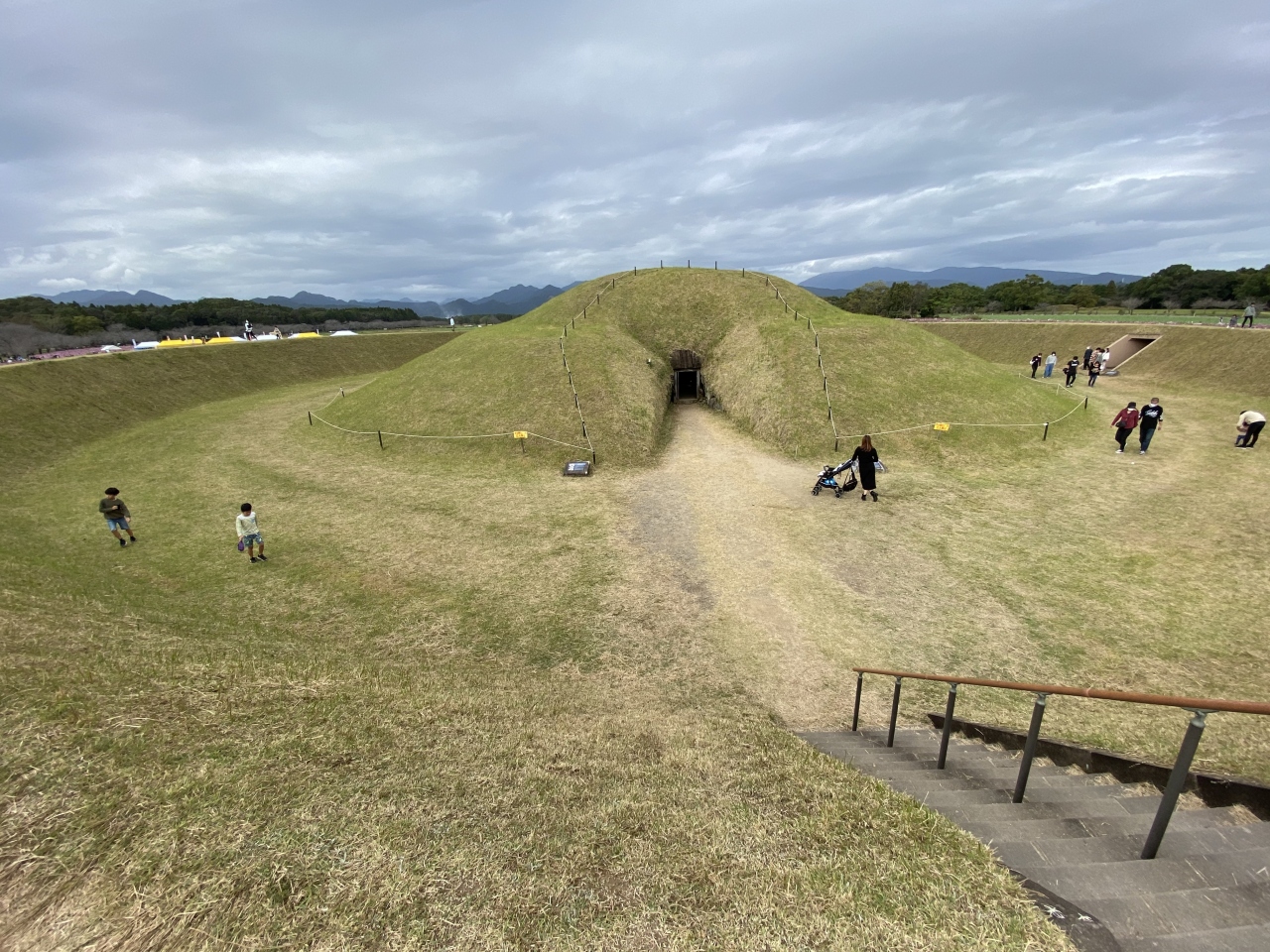 西都原古墳群は、紀元5世紀ごろが最盛期で、319基の古墳が造られた当時に近い状態で残る国の特別史跡だそうで、横穴式石室は、南九州最大級らしい !!