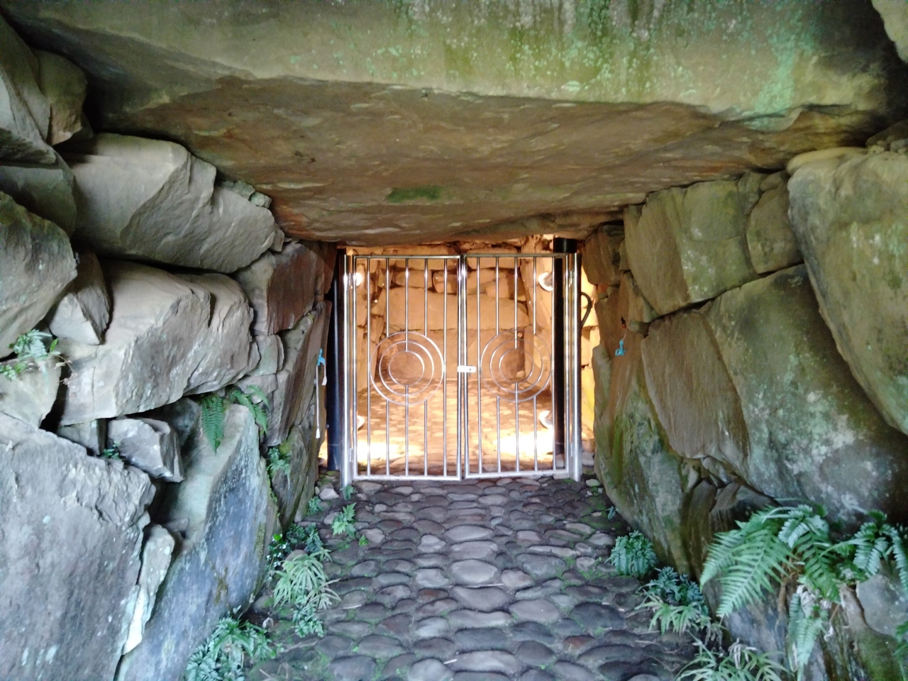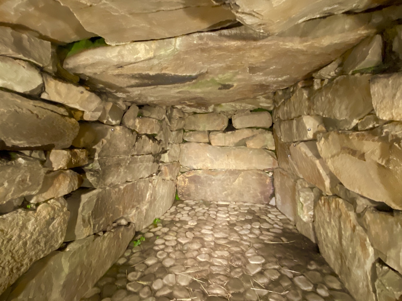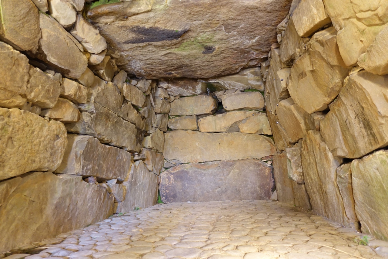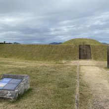 外堤と二重の周溝を持つ珍しい形ですが、開放されており、再現されている石室の中にも入れるので、家族連れの遊び場状態になっています