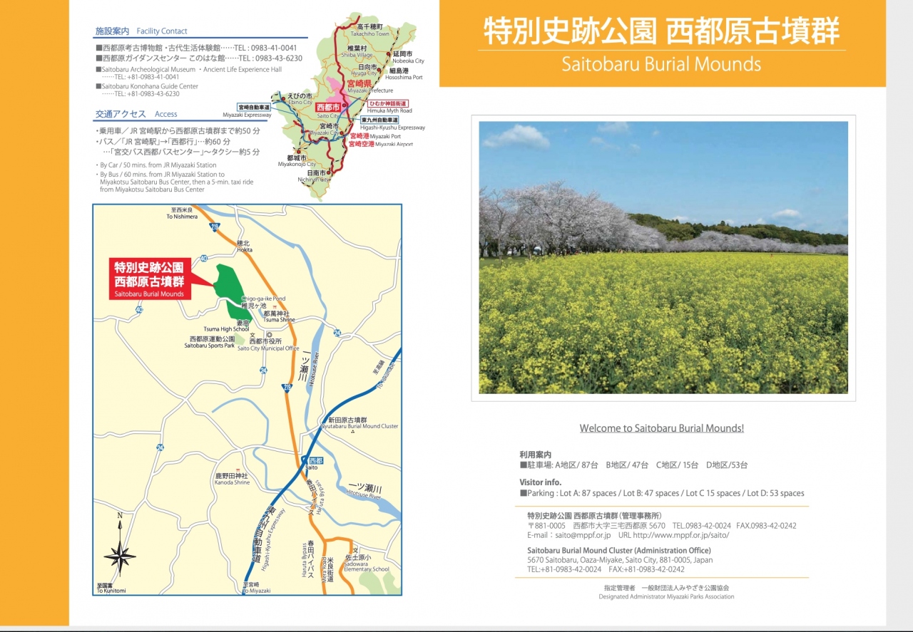 宮崎市内から国道219号線を経由して約40分。東九州自動車道西都ICから10分。宮崎空港から70分。西都行きバスもあります。