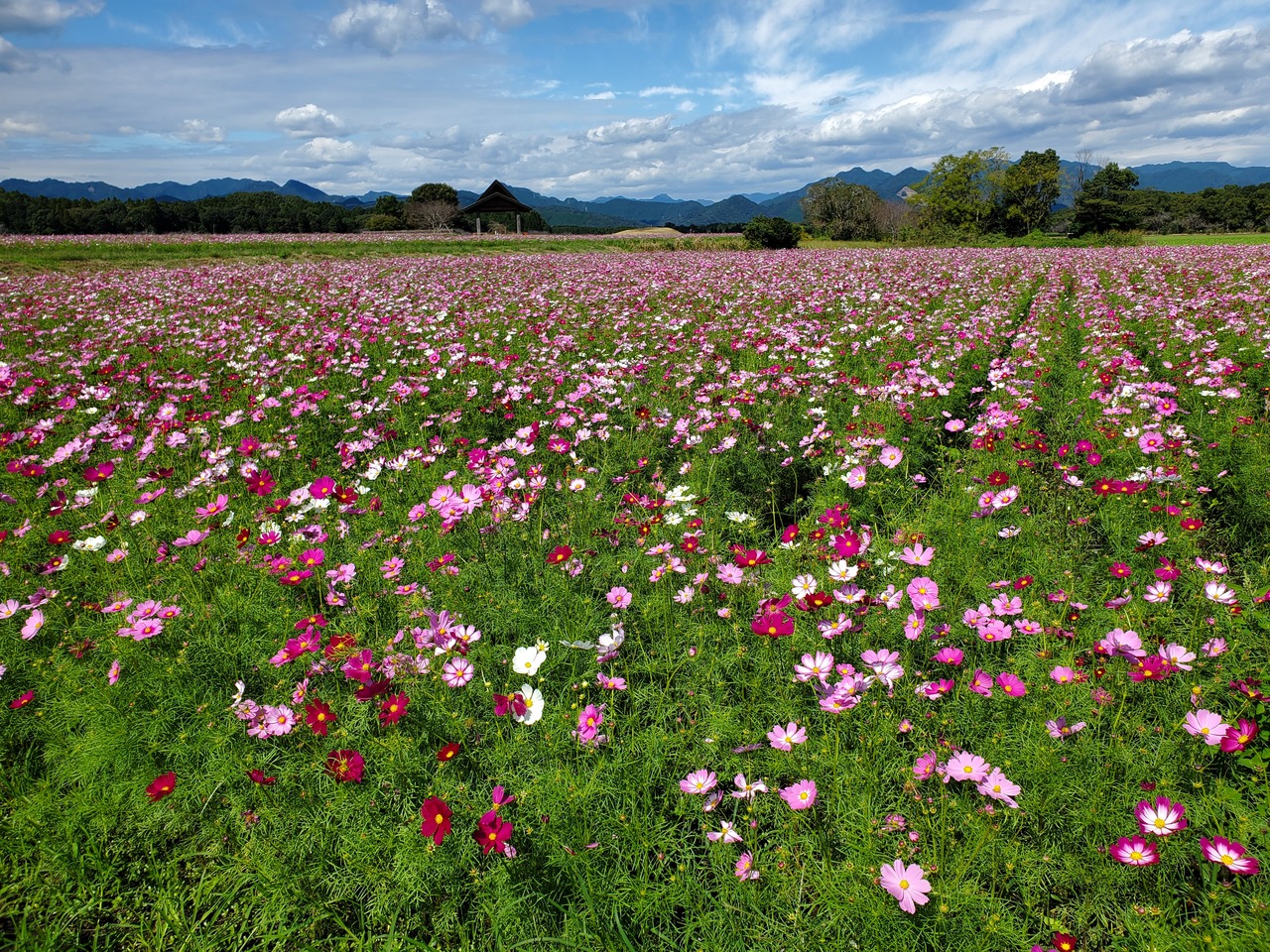 周辺は見事なコスモス畑が広がり、春は桜、夏はヒマワリと季節が楽しめて良い公園ですね
