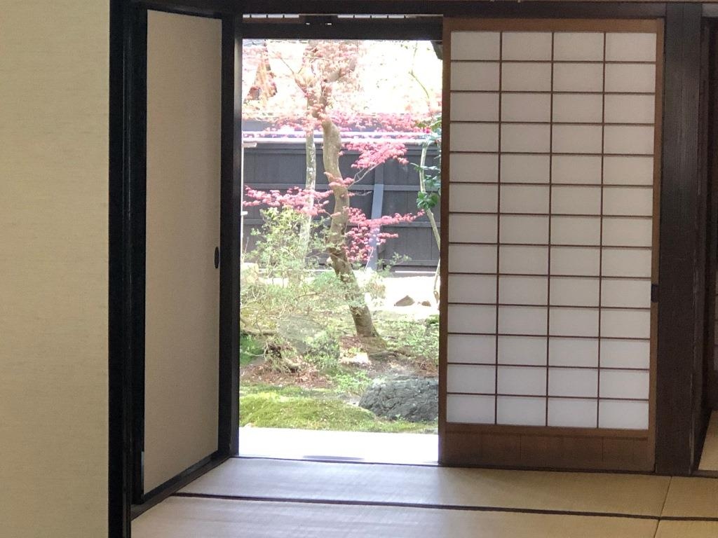 室内から見る苔むした庭園が美しい武家屋敷
