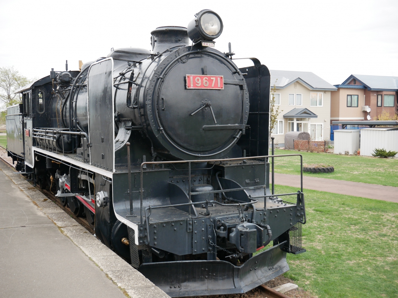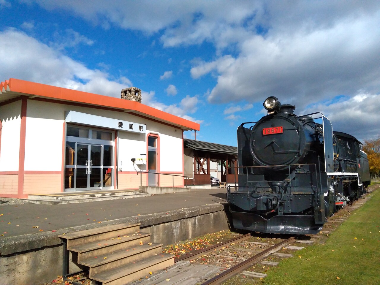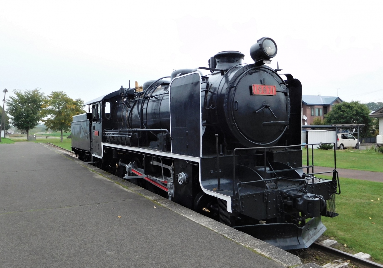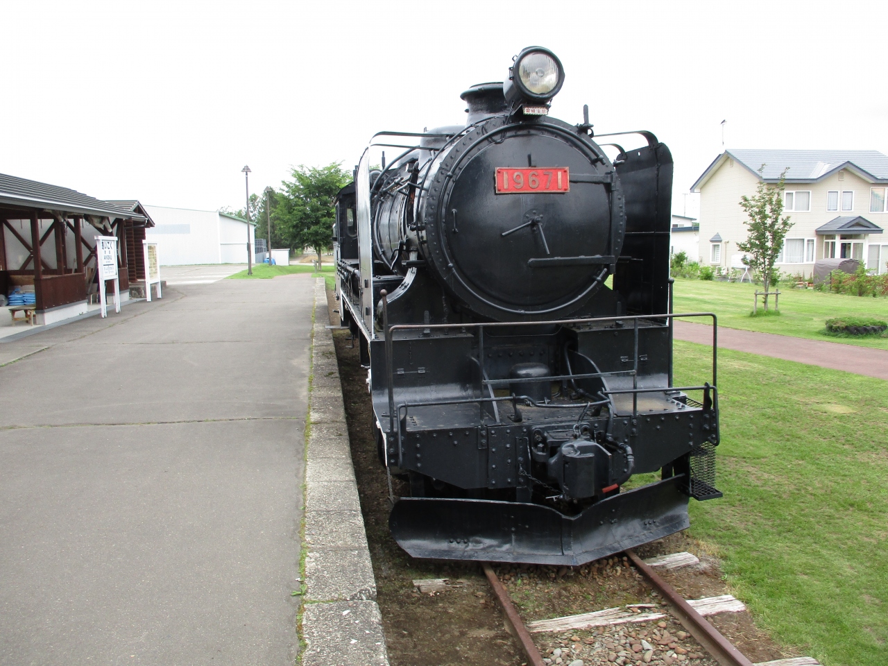 旧国鉄時代の当時のまま保存されているプラットホーム跡です。 漆黒に輝く蒸気機関車が展示されているので、記念に撮影出来ます(車内には入れません)。