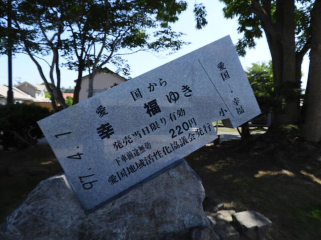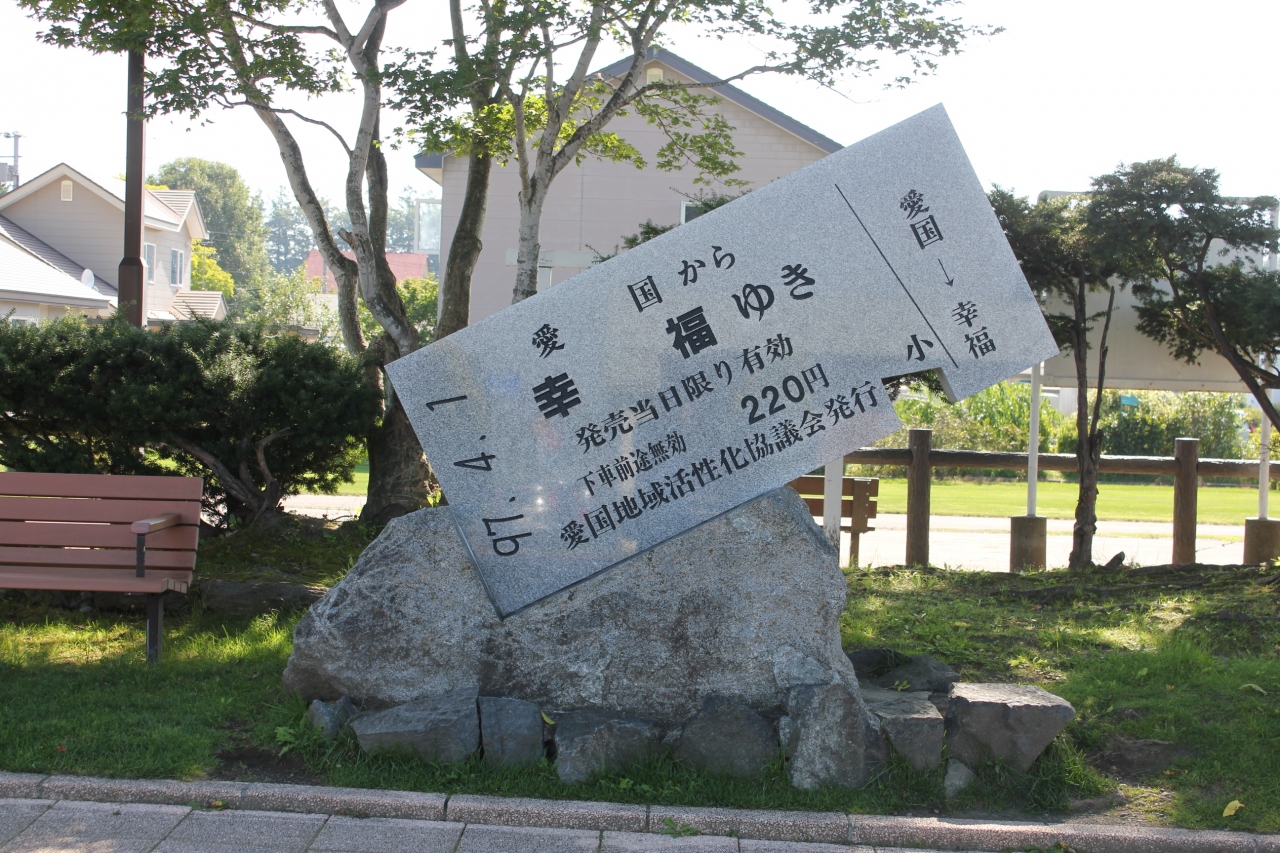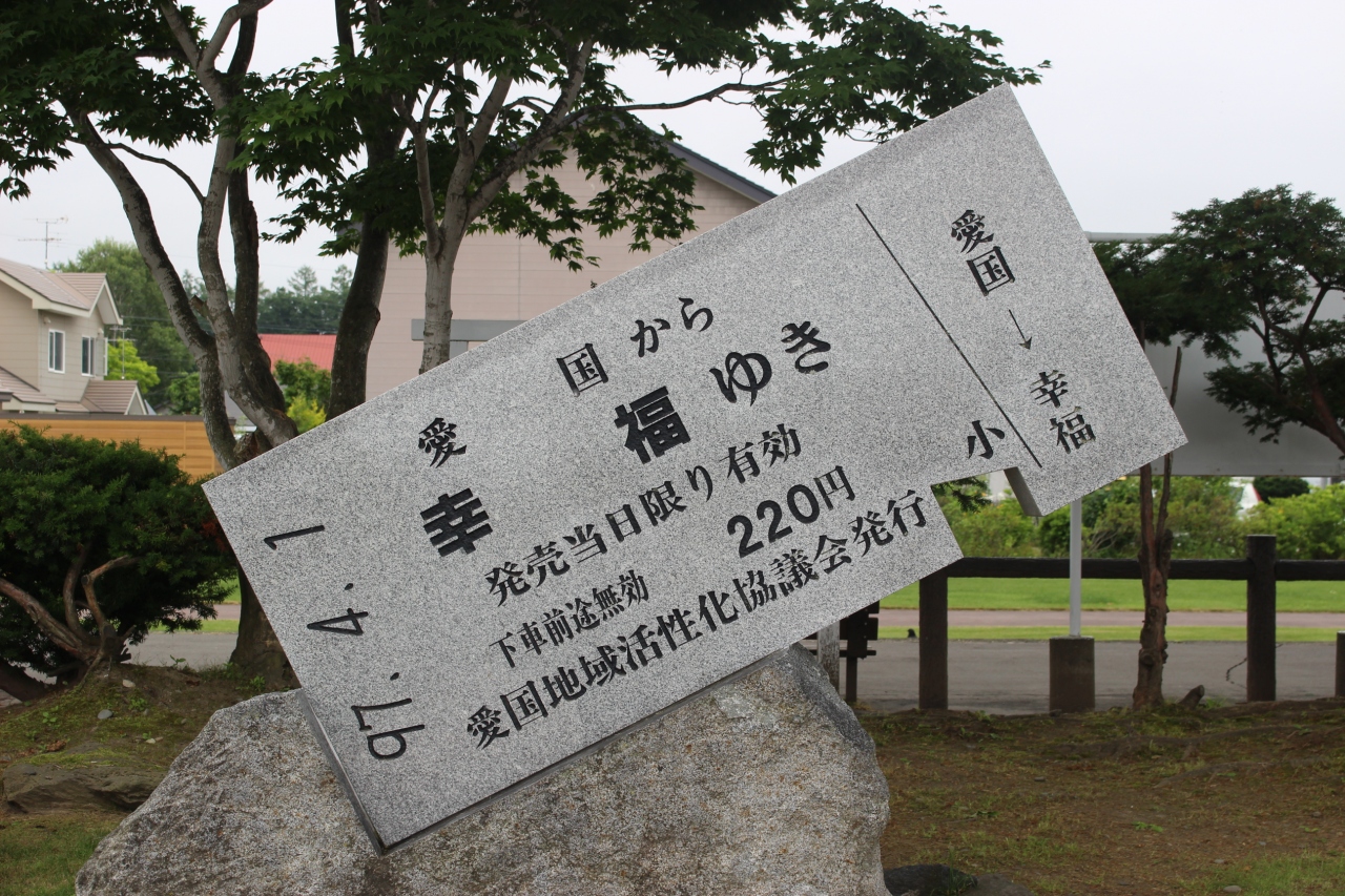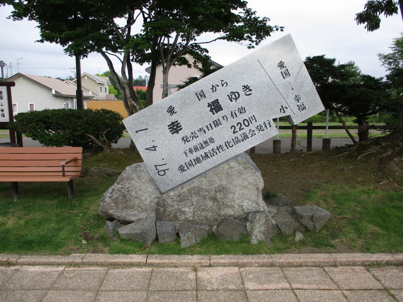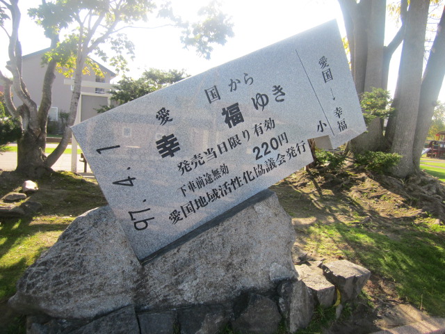 道東の海から帯広駅前のホテルに戻る途中で、幸福駅と愛国駅(愛国交通記念館)に連続して立ち寄りまた。 愛国駅は、昭和48年... 続きを読むのテレビで紹介されたことを機に「愛の国から幸福へ」のキャッチフレーズで切符が売れまくったようで、大きな切符の石像まで設置されていました。 小さな旧駅舎は愛国交通記念館として当時の資料などが展示されています。 閉じる