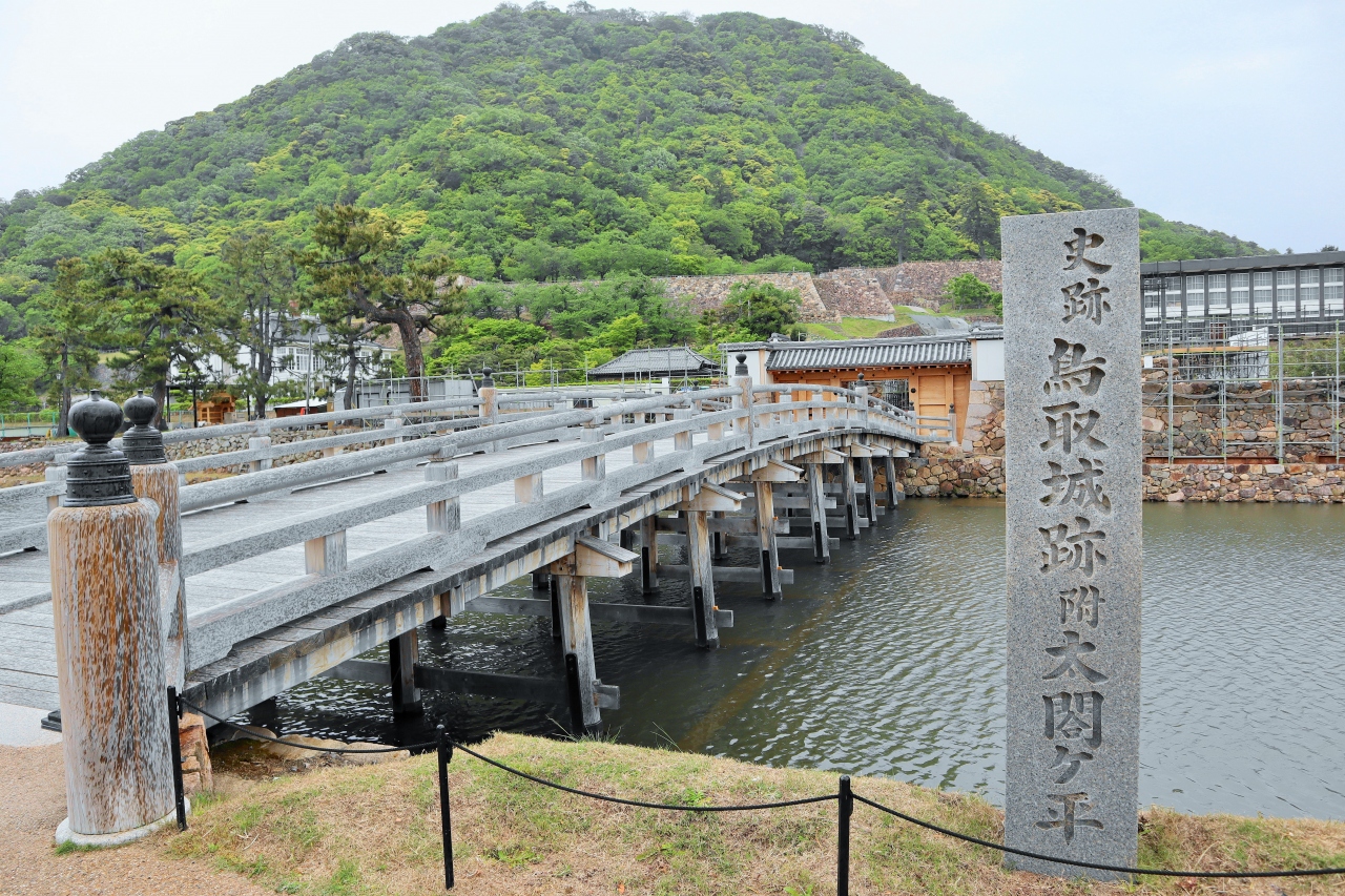 豊臣秀吉の兵糧攻めで有名な鳥取城の跡地の一部。市内を一望できる「山上の丸」までは約40分。桜の名所百選にも選ばれて、春には約230本の桜が咲き誇る。内濠に沿って松・梅・ツツジ・桜が植えられている。フレンチ・ルネッサンス様式の白亜の洋館「仁風閣」は国指定重要文化財。
