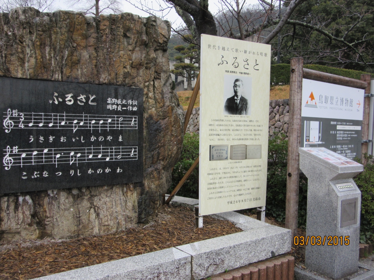 また思わぬ収穫であったが、鳥取が生んだ偉大な作曲家で今も地元の人の最も愛する曲の一つ【ふるさと】...うさぎ追いし...や【おぼろ月夜】【春の小川】の作曲家【岡野 貞一氏】の歌碑と5−6名の歌手による【ふるさと】のテープが建立されていた。